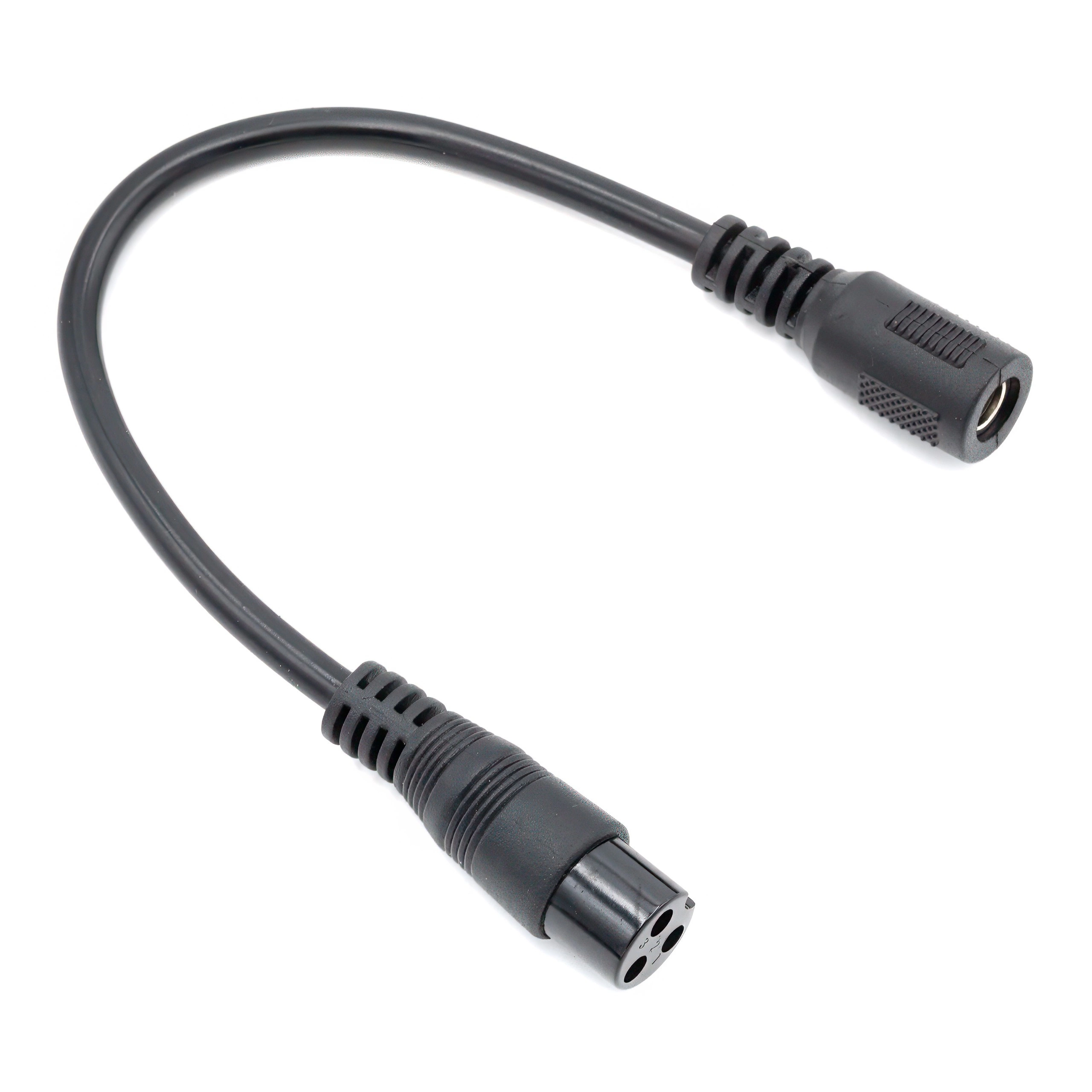 Adaptern har en vanlig DC-kontaktstorlek (2,1 mm x 5,5 mm) i ena änden och en GX 16-kontakt i den andra. Den här adaptern är konstruerad med hållbarhet i åtanke och är byggd för att klara regelbunden användning och hantering. Kontakterna är tillverkade av högkvalitativa material som säkerställer en stabil och säker anslutning, vilket minimerar risken för strömförlust eller frånkoppling.