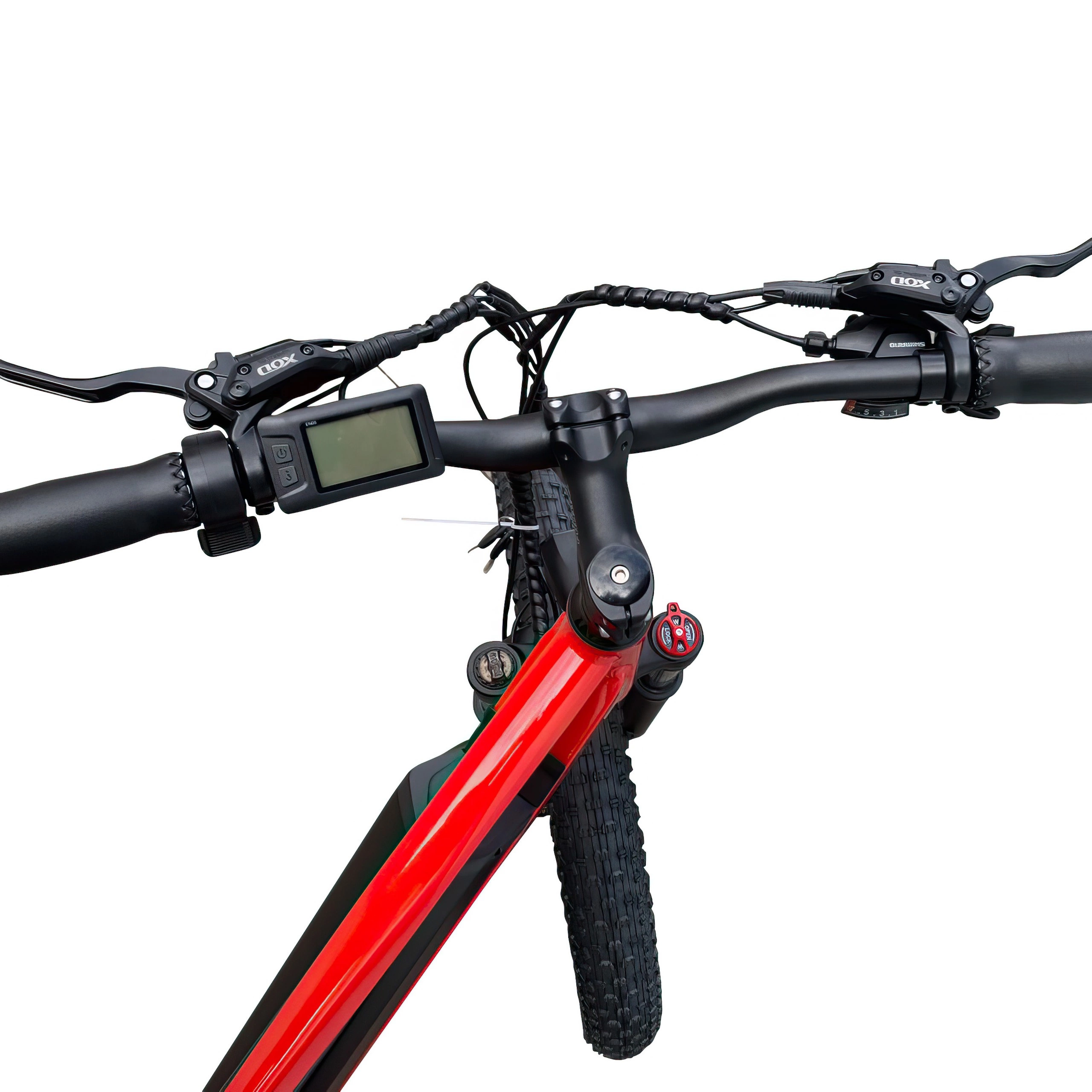 Cykeln är utrustad med Shimano-växlar som erbjuder en rad olika hastigheter för att tackla olika landskap. De främre och bakre hydrauliska skivbromsarna från XOD ger överlägsen stoppkraft, vilket garanterar din säkerhet även i höga hastigheter. Bromshandtagen är utformade för att stänga av kraften vid inbromsning, vilket ger ett extra lager av säkerhet.