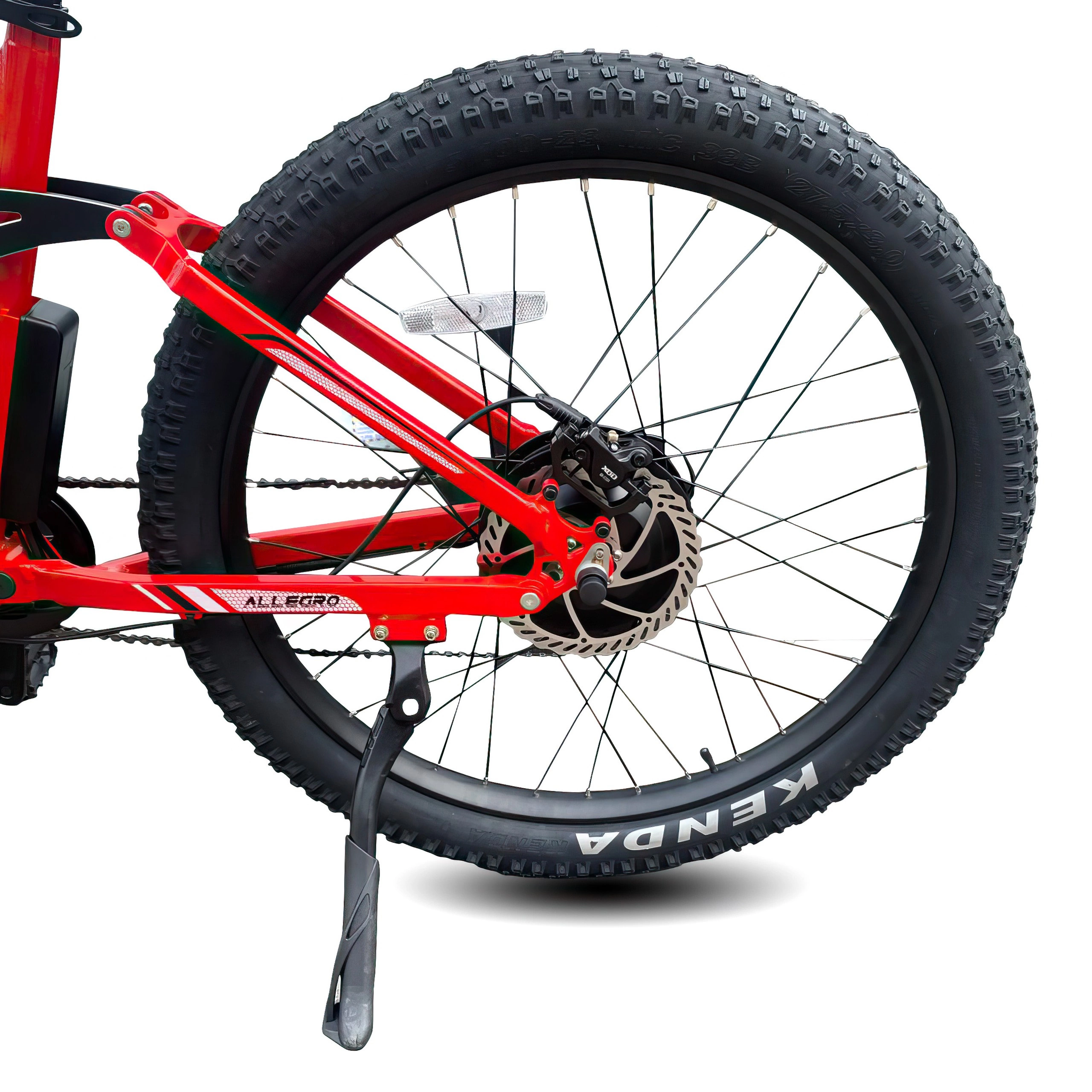 Allegro MTB E-Bike är konstruerad med en stark och lätt ram i aluminiumlegering, vilket ger den perfekta balansen mellan hållbarhet och smidighet. Den robusta konstruktionen gör att cykeln enkelt kan hantera varierande terräng och förhållanden.