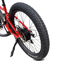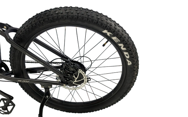 Kenda 27,5'' x 3,0''-däcken, tillsammans med dubbelväggiga aluminium fälgar, ger utmärkt grepp och hållbarhet, vilket bidrar till cykelns övergripande styrka och livslängd.
