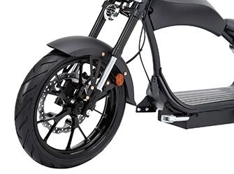 Ampride Chopper är utrustad med en hydraulisk fjädringsgaffel som garanterar smidig körning i olika terränger. Dessutom ger de främre och bakre hydrauliska skivbromsarna inte bara exakt stoppkraft utan en innovativ motoravstängning vid inbromsning ger ett extra lager av säkerhet.
