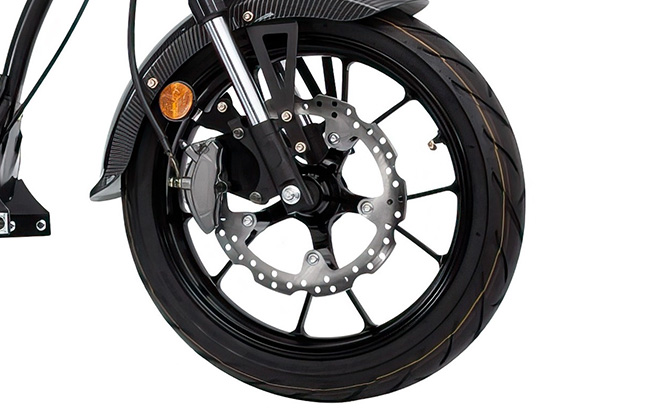 När det gäller stoppkraft ger de främre och bakre skivbromsarna, som är kopplade till hydrauliska mekanismer, exakt kontroll. Den innovativa bromsspaken säkerställer att motorn stängs av vid inbromsning, vilket ger ett extra lager av säkerhet.