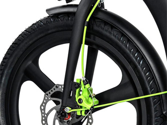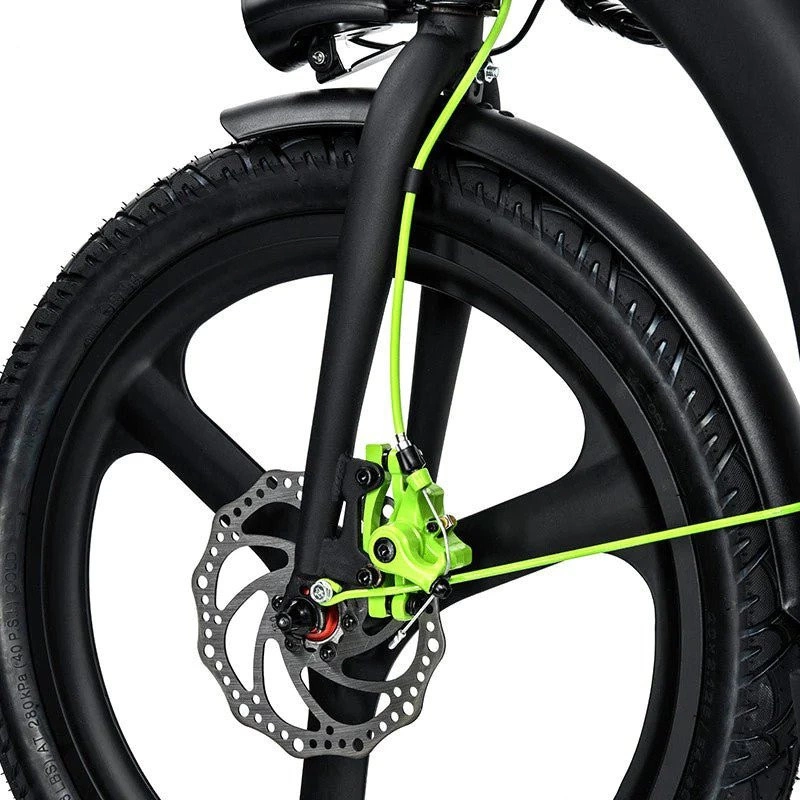 De stora 20-tums fram- och 16-tums bakdäcken gör körupplevelsen så stabil som möjligt. Den elektriska elektrisk skoter prioriterar säkerhet med pålitliga skivbromsar fram och bak. Ljusstarka LED-lampor ger god sikt nattetid. Oavsett om du reser tidigt på morgonen, på natten eller i dimmigt väder kommer du att vara lätt att se för andra trafikanter.