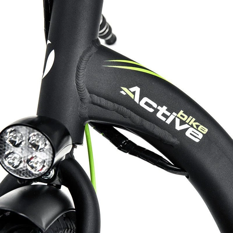 Argento Active Bike Electric Elektrisk skoter har en modern italiensk design som harmoniserar estetik och funktionalitet. Den lätta aluminiumlegeringen garanterar hållbarhet samtidigt som den är lätt att förvara. Det svarta färgschemat med gröna inslag ger en modern twist till det klassiska utseendet.