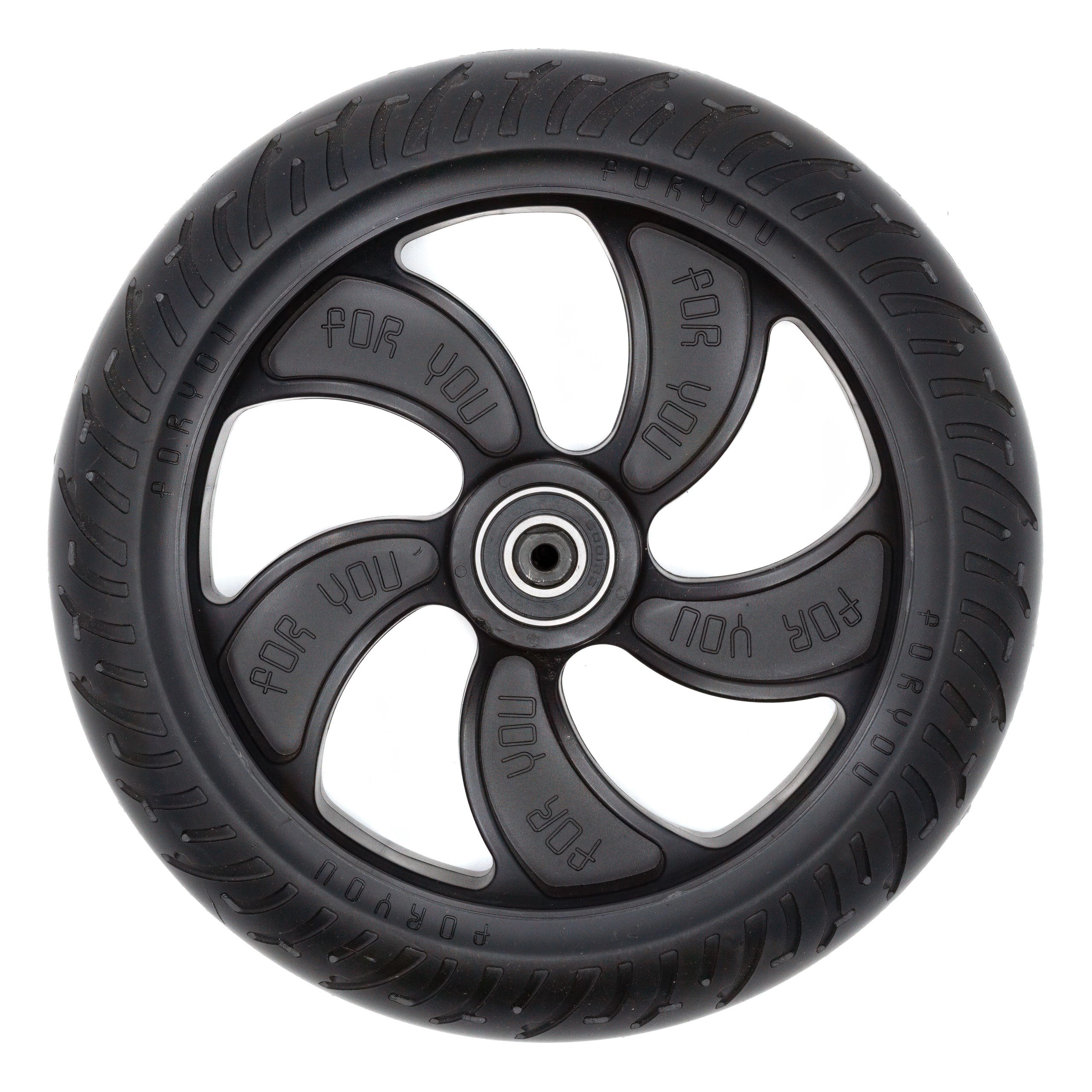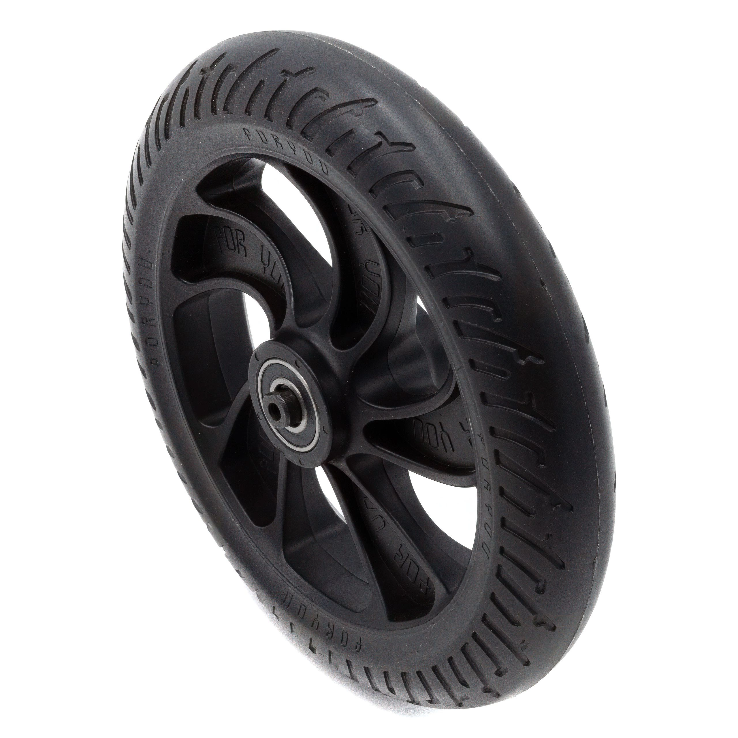 Denna bakhjulsenhet är utformad för att optimera prestandan hos din elektrisk skoter. Hjulets konstruktion och material är utvalda för att ge en balans mellan flexibilitet och styvhet , vilket bidrar till en mjukare och stabilare körning. Det absorberar stötar och vibrationer effektivt, vilket förbättrar körkomforten, särskilt i ojämn terräng.