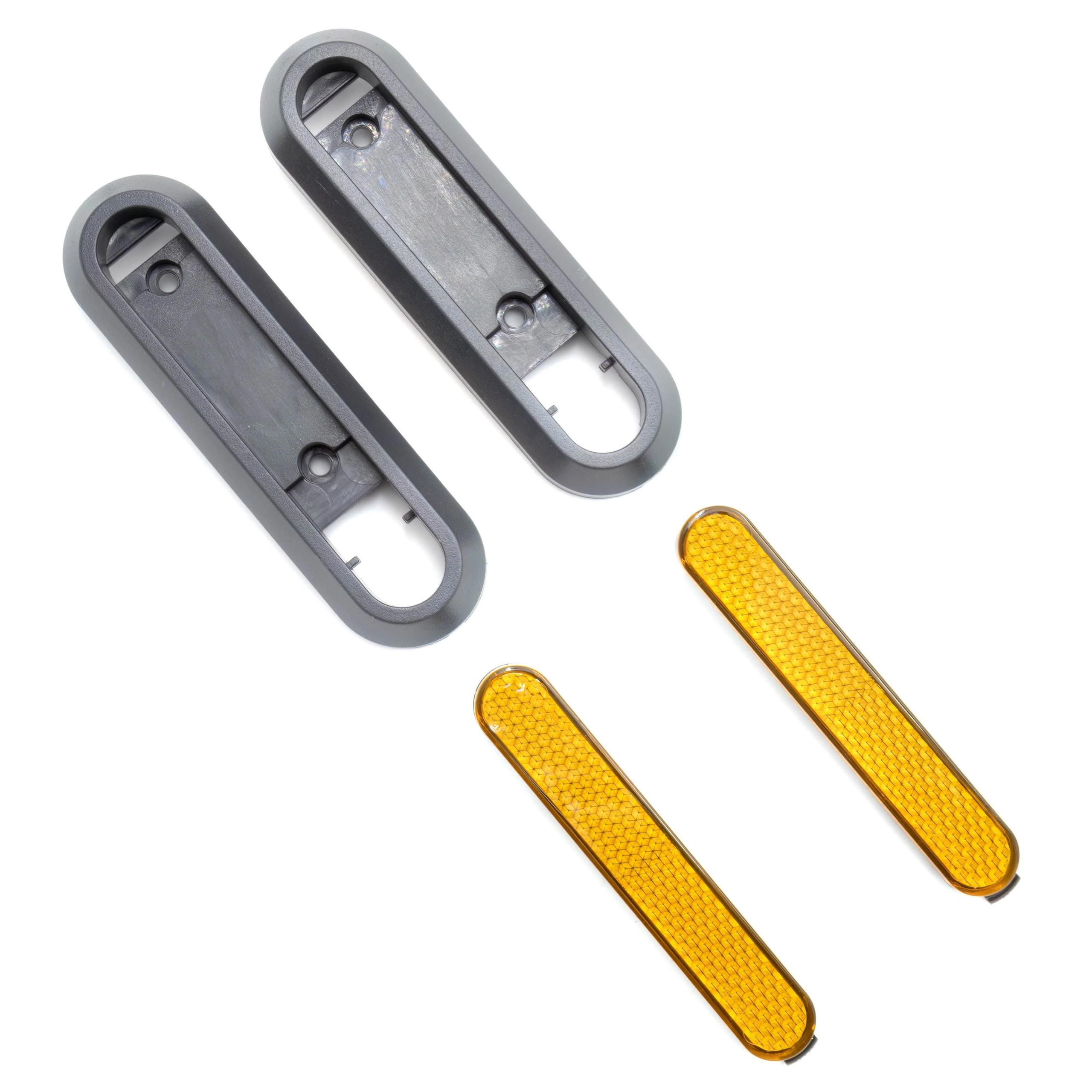 Ett set med bakre sidoskydd är ett enkelt men effektivt sätt att förbättra din synlighet på vägen. Den klara gul-orange färgen och det högreflekterande plastmaterialet gör det lättare för förare att upptäcka din elektrisk skoter på avstånd, även i svagt ljus.