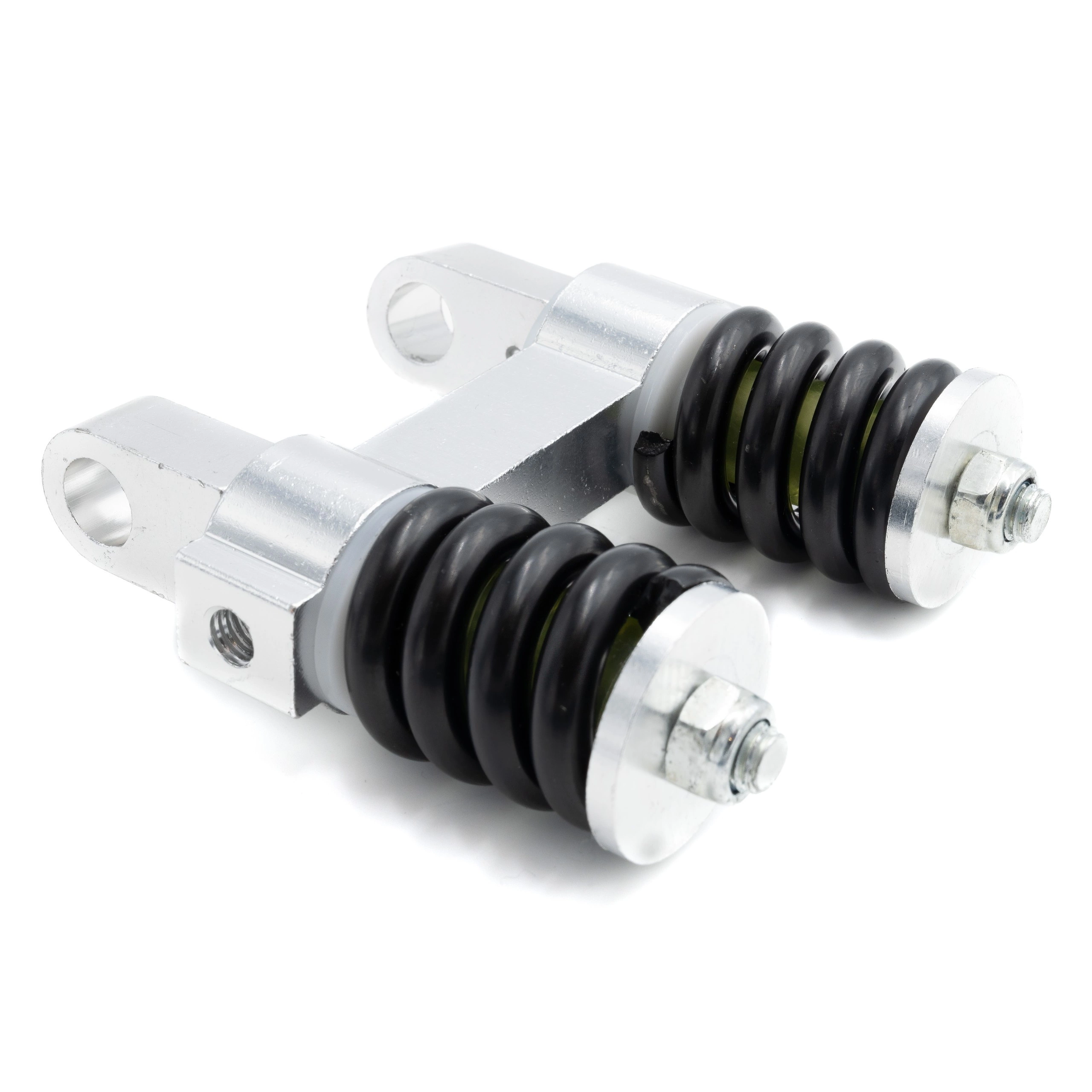 Den bakre stötdämparen iElektrisk skoter med fjäderfäste ger en bekväm och kontrollerad körupplevelse. Denna specialiserade stötdämpare förbättrar avsevärt elektrisk skoter s hantering och körkvalitet i ojämn och grov terräng.