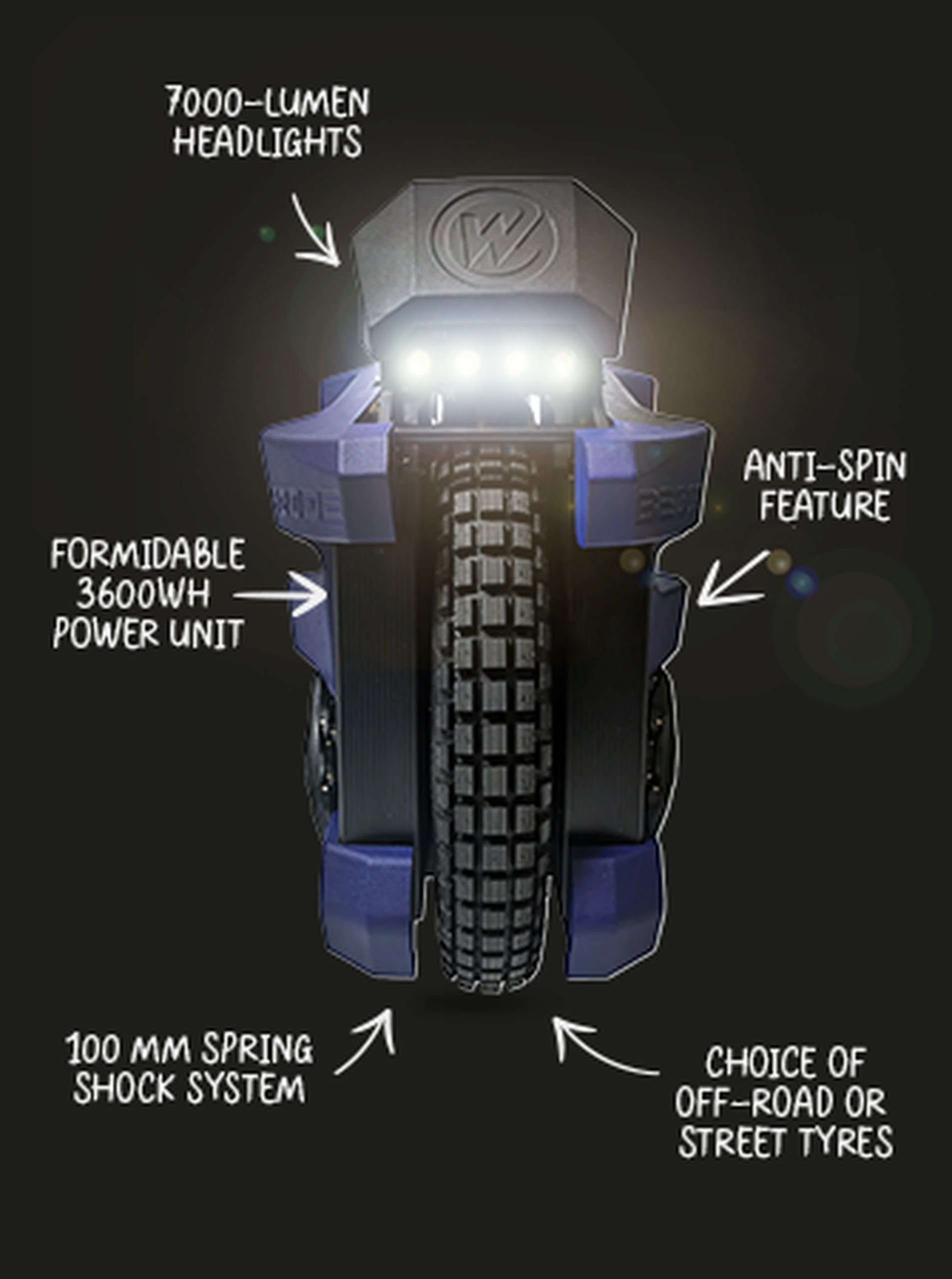 Säkerhetsfunktioner som antispinnknappen, stora pedaler för stabil fotplacering och en ljusstark 7000-lumen-strålkastare garanterar att din körupplevelse är säker, dag som natt. De extra Bluetooth-högtalarna ger en dimension av underhållning till varje resa