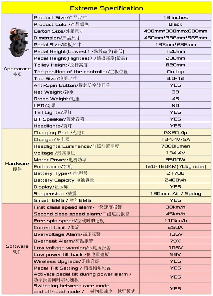 Gör dig redo att erövra spåren med Begode Extreme, chefen för 18-tums elektriska enhjulingar. Denna svarta skönhet handlar inte bara om utseende; det är ett kraftpaket som vill erövra tuff terräng. Med ett 134,4V-system och den grymma C40-motorn - den mest kraftfulla i branschen - är detta hjul inte bara extremt till namnet