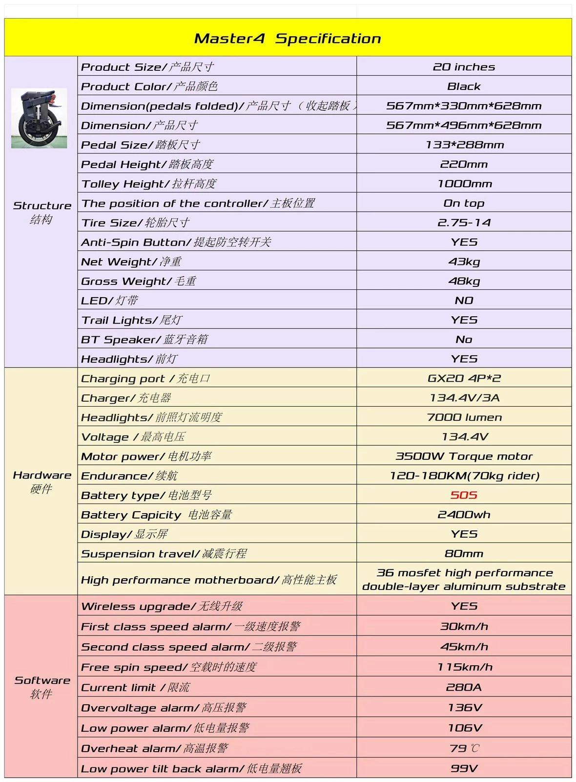 Begode Master4 finns i elegant svart och har en look som passar alla stilar. Den moderna designen kompletteras av praktiska funktioner som en pedalstorlek som ger ett bekvämt fotfäste och en pedalhöjd på 220 mm (8,6 tum) för bättre frigång.