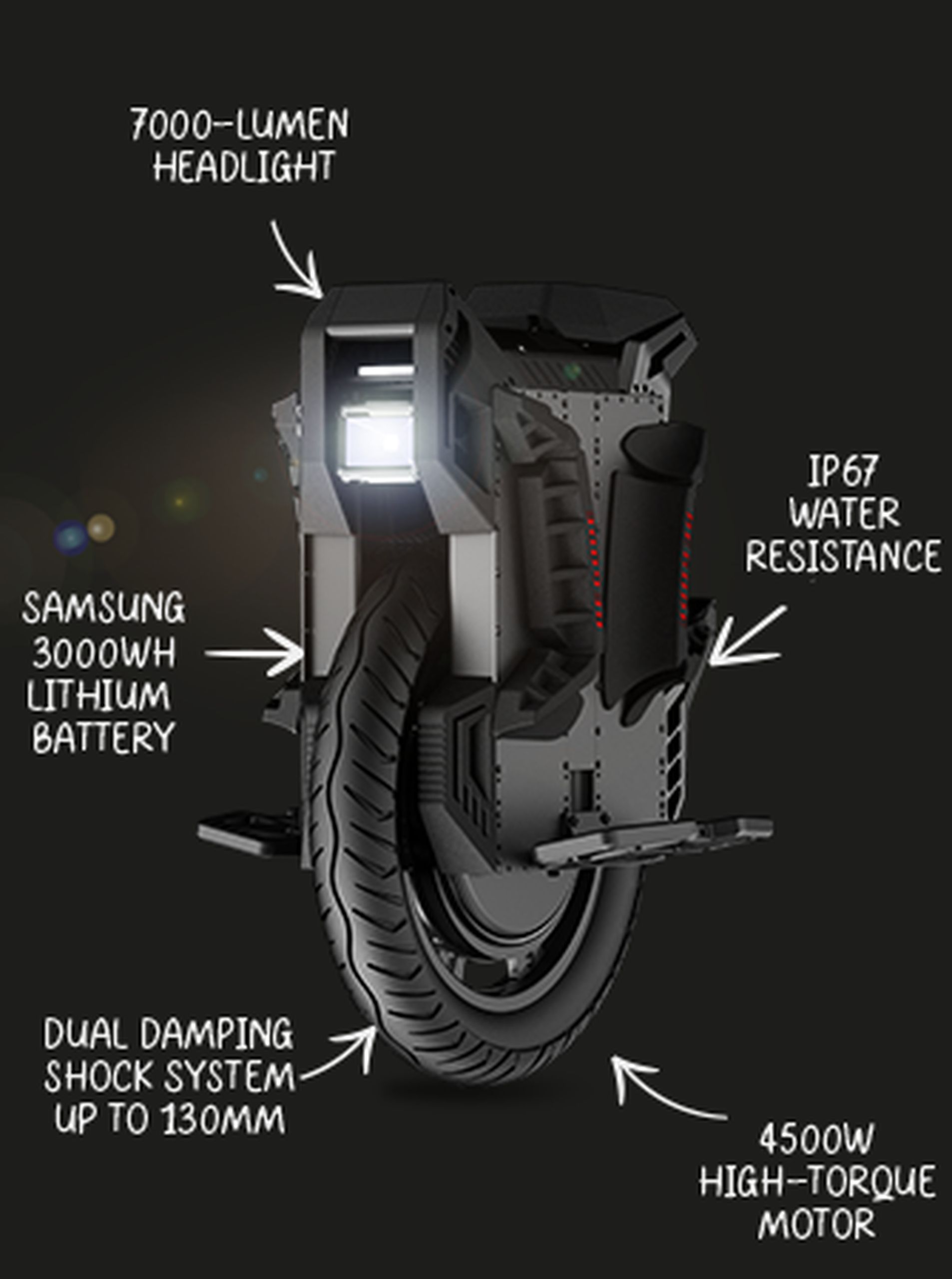 Begode X-Way snålar inte på säkerhetsfunktionerna. Den har hastighetslarm vid 18 mph (30 km/h) och 28 mph (45 km/h) för att hjälpa dig att hålla dig inom säkra gränser. Den ljusstarka 7000-lumen strålkastaren och bakljuset håller dig synlig, medan antispinnknappen förhindrar olyckor när du inte kör.