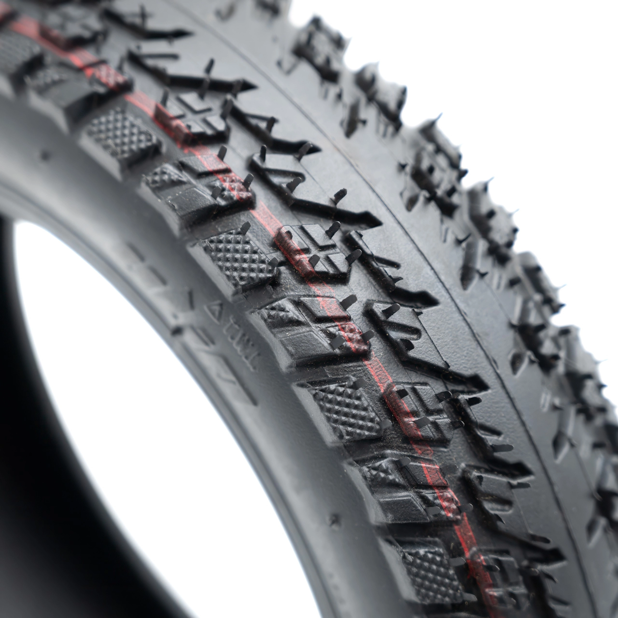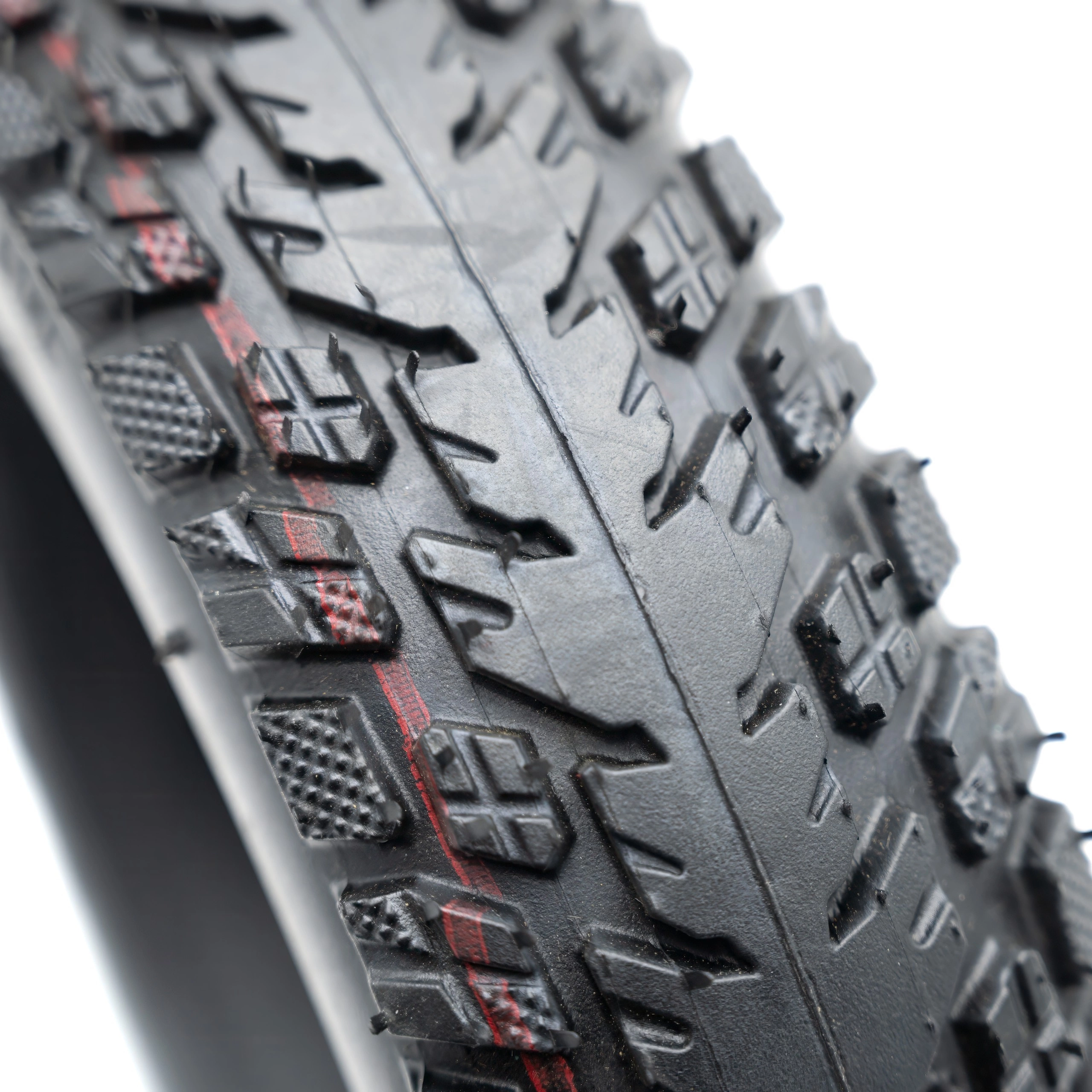 Det här däcket har ett aggressivt slitbanemönster. Det ger utmärkt grepp på lösa eller ojämna ytor, vilket ger ett fast grepp och förhindrar att fordonet glider.