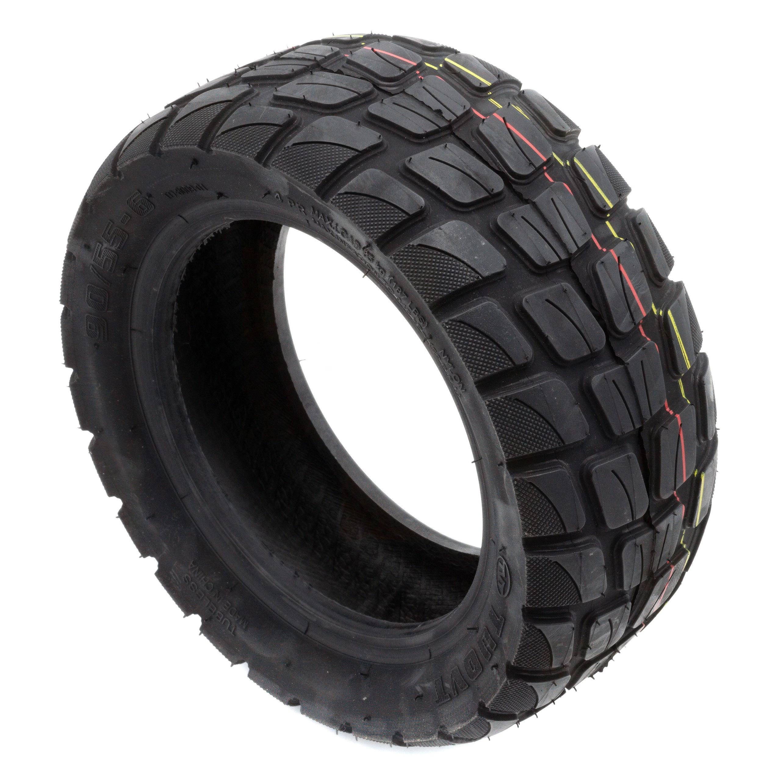 Även om 90/55 - 6-däcket är byggt för terrängkörning ger det också en bekväm och smidig upplevelse på vanliga vägar. Dess hybriddesign balanserar terränggrepp med vägeffektivitet, vilket minskar vibrationer och buller vid övergången från grova stigar till asfalterade ytor.