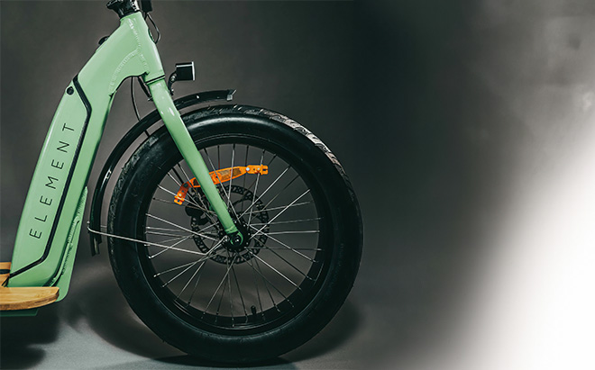 Element Bondi har ett annorlunda tillvägagångssätt jämfört med andra elektrisk skoter modeller. Den erbjuder en genomtänkt lösning på utmaningarna med sina 20x3-tumsdäck som utlovar stabilitet. De är dubbelt så höga som traditionella elektrisk skoter -däck. Deras slitbana ger ett exceptionellt grepp för ökad säkerhet.