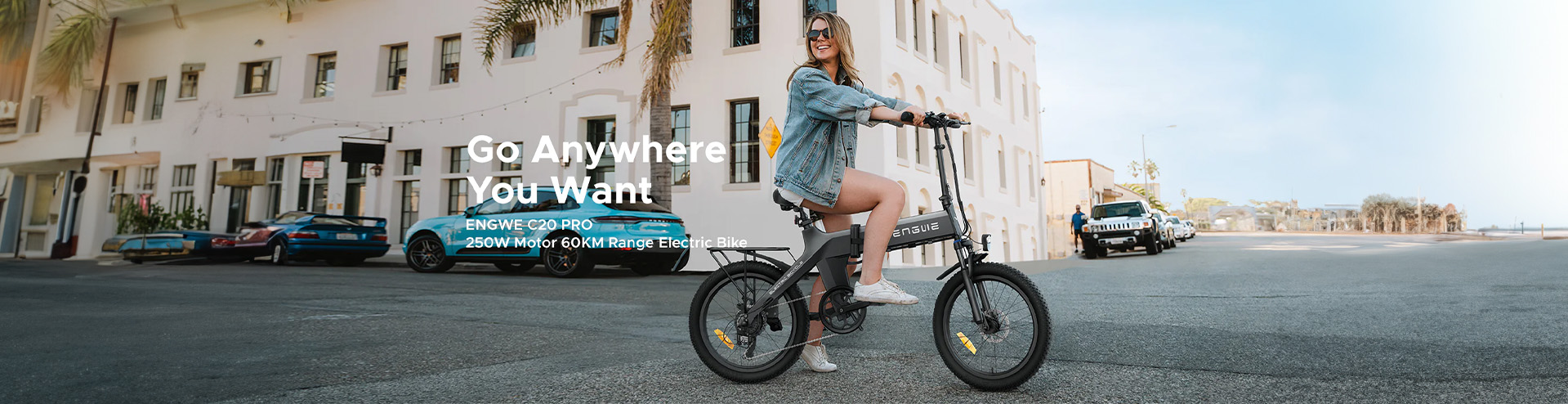 ENGWE C20 Pro är utrustad med ett 36V 19,2Ah löstagbart litiumjonbatteri. Den kan köras upp till 150 km (93mi) i pedalassistansläge eller 70 km (43mi) med enbart batteriet. Laddningen tar ca 6 timmar.
