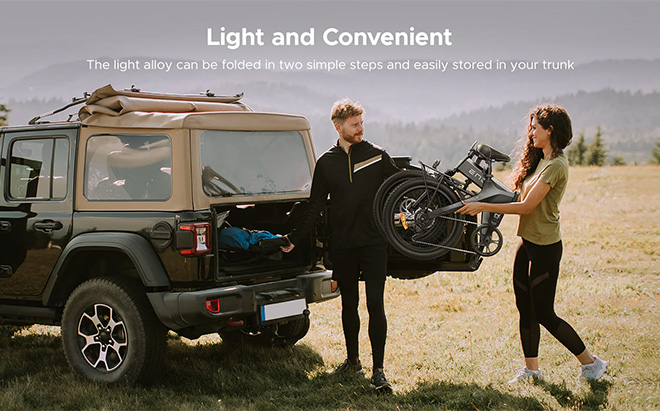 Den hopfällbara designen på C20 Pro gör den lätt att förvara och transportera. Oavsett om den ska rymmas i ett bagageutrymme eller förvaras i ett litet utrymme är cykelns bärbarhet en viktig egenskap för bekvämligheten.