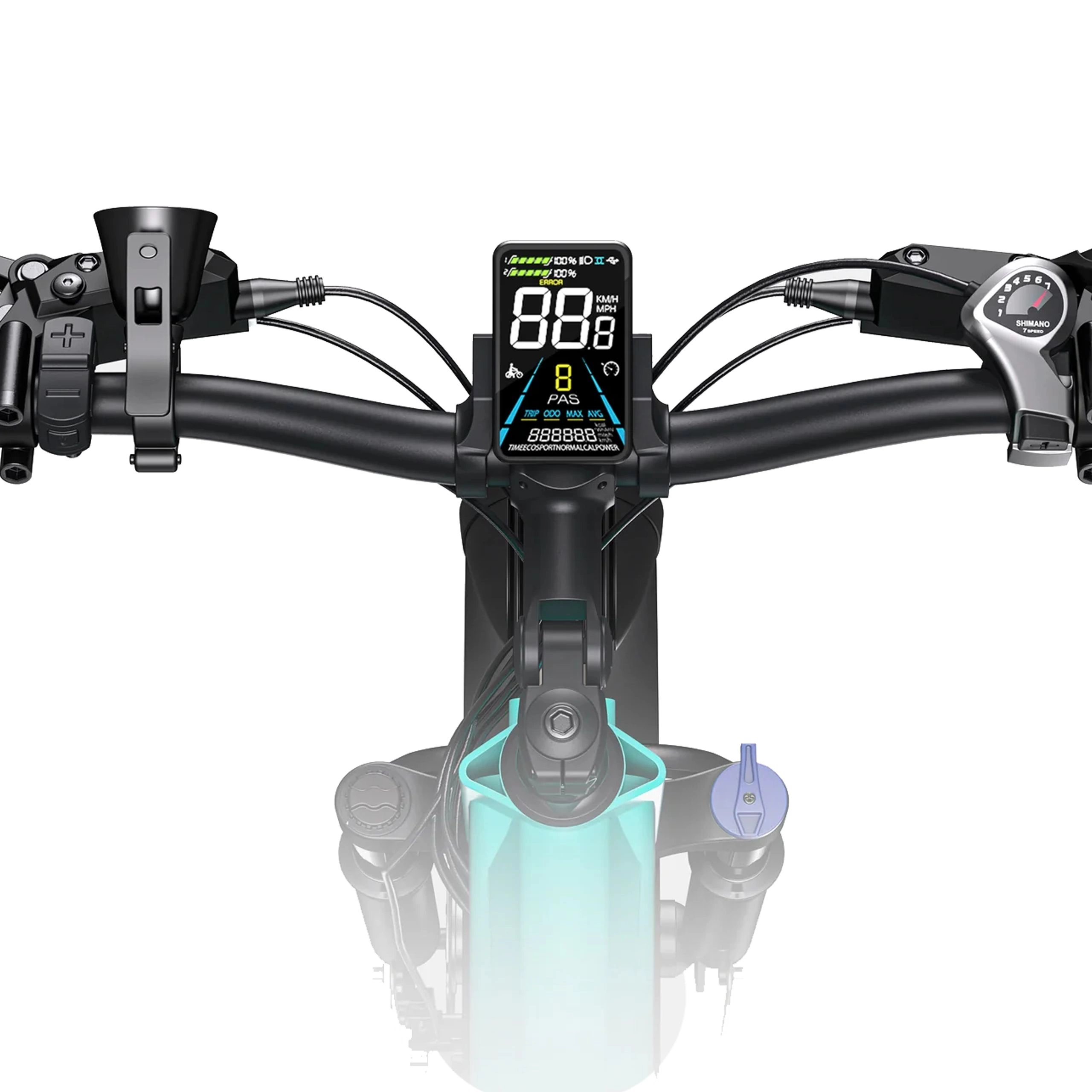 Den avancerade LCD-displayen ger realtidsdata om batteristatus, hastighet, avstånd, effekt och körtid, tillsammans med feldetektering och belysningskontroller för en säkrare och mer informerad körning.
