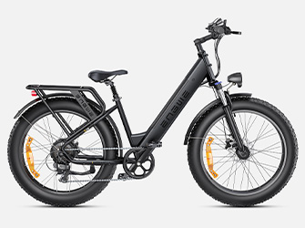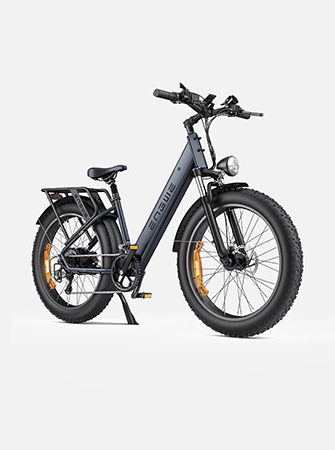 ENGWE E26 kombinerar 26" x 4,0" breda däck med en robust ram helt i aluminium. De feta däcken ger utmärkt grepp och gör det enkelt att ta sig fram i olika terränger, på snö och bergsvägar. Cykelns mekaniska skivbromsar och fram- och bakljus garanterar säkerhet och komfort under dina turer, dag som natt.