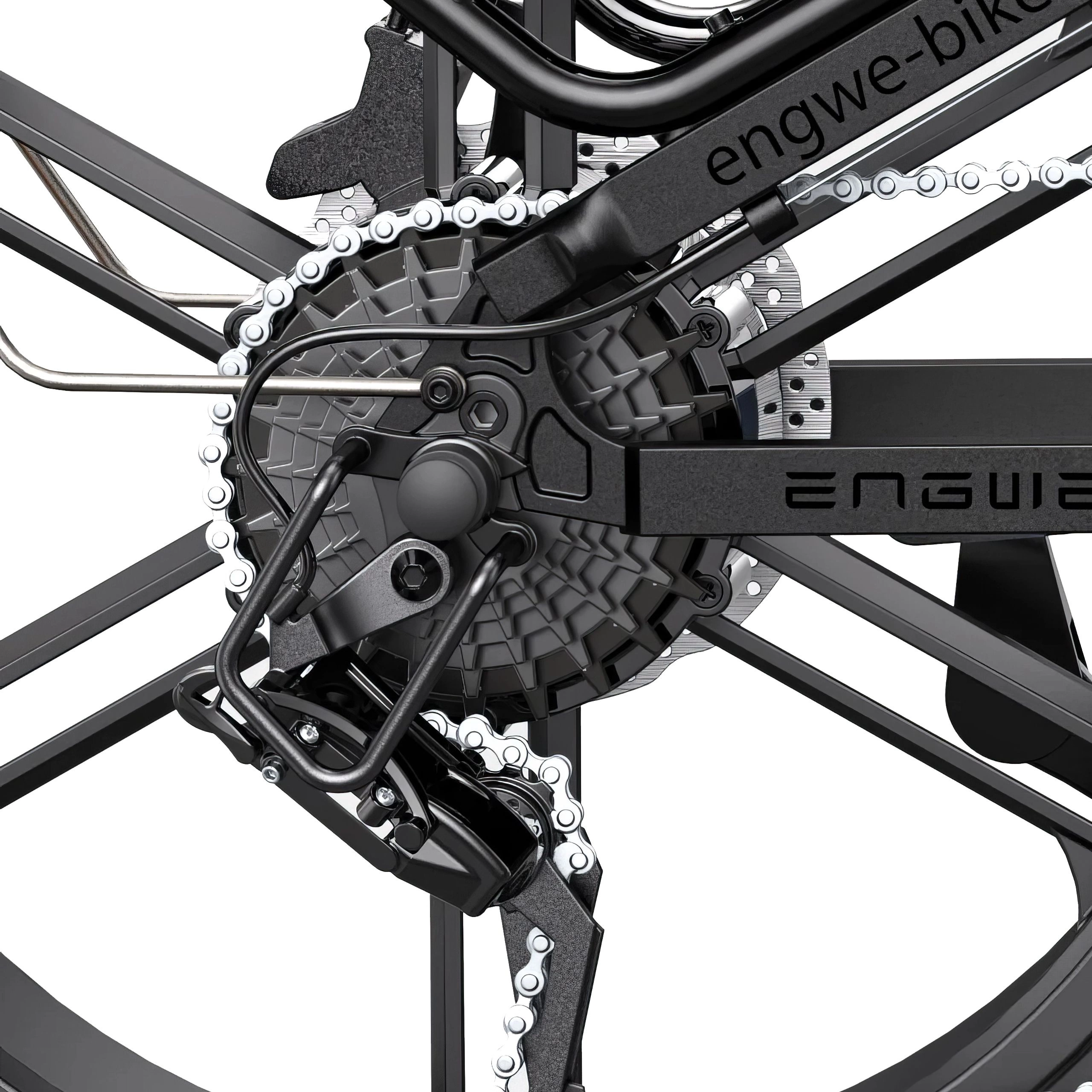 ENGWE Engine Pro har fjädring både fram och bak. Det ger utmärkt stötdämpning och en smidig körning i ojämn terräng. Oavsett om du navigerar på stadsgator eller i terräng säkerställer det avancerade fjädringssystemet en bekväm och stabil resa.