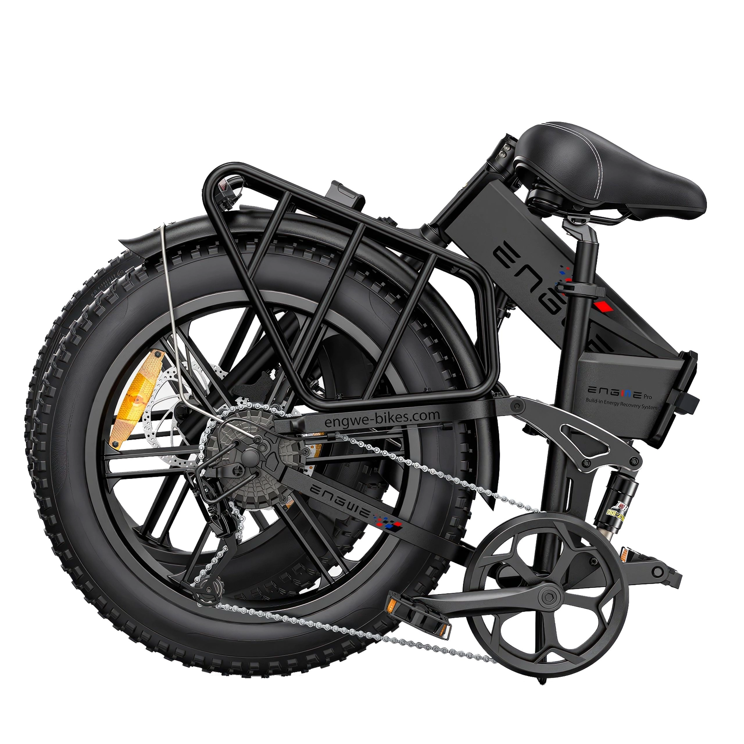 ENGWE Engine Pro elcykel har en 3-stegs hopfällbar ram i aluminiumlegering, vilket gör den lätt att förvara och transportera. När cykeln är hopfälld är den tillräckligt kompakt för att få plats i bilens bagageutrymme eller i ett litet förvaringsutrymme. Det gör den perfekt för pendling, resor och förvaring hemma.