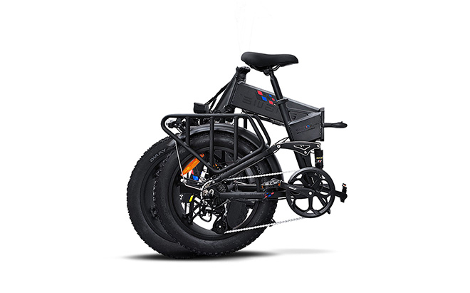 ENGWE Engine Pro elcykel har en 3-stegs hopfällbar ram i aluminiumlegering, vilket gör den lätt att förvara och transportera. När cykeln är hopfälld är den tillräckligt kompakt för att få plats i bilens bagageutrymme eller i ett litet förvaringsutrymme. Det gör den perfekt för pendling, resor och förvaring hemma.