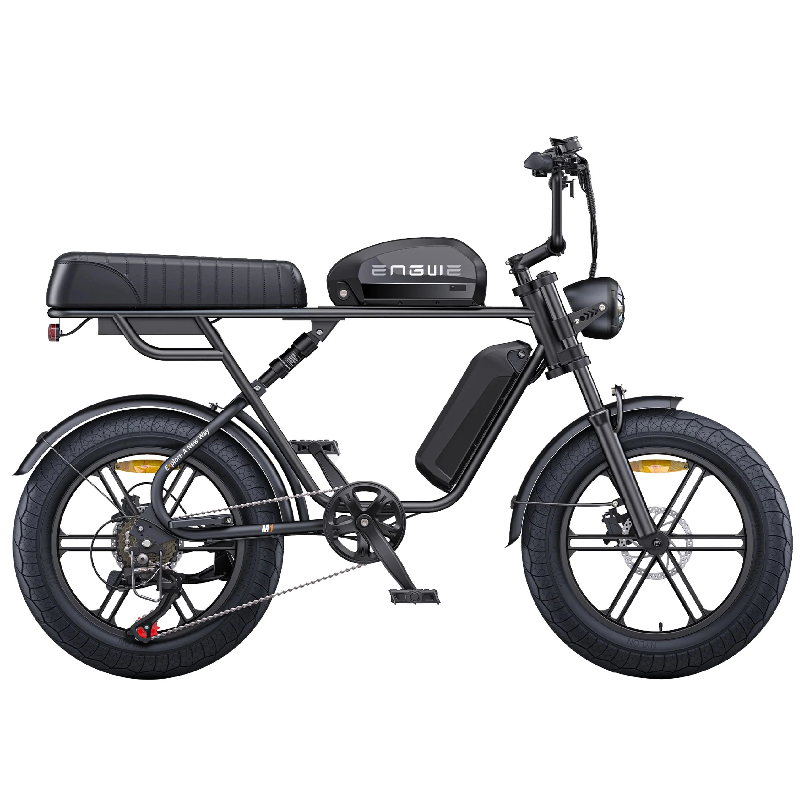 ENGWE M1 elcykel kombinerar en kompakt design med imponerande räckvidd. Denna elcykel med två passagerare har en 250 W-motor i en miniram som är byggd för stadslivet. Den har en imponerande räckvidd på 170 km och en bekväm sittplats för två personer. Den är perfekt för dem som vill dela sin resa eller behöver extra lastutrymme.