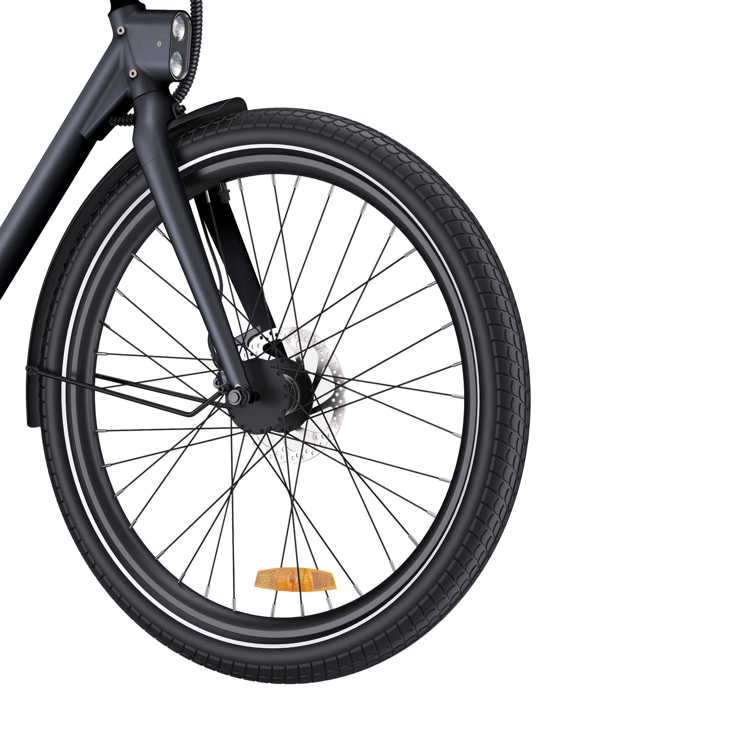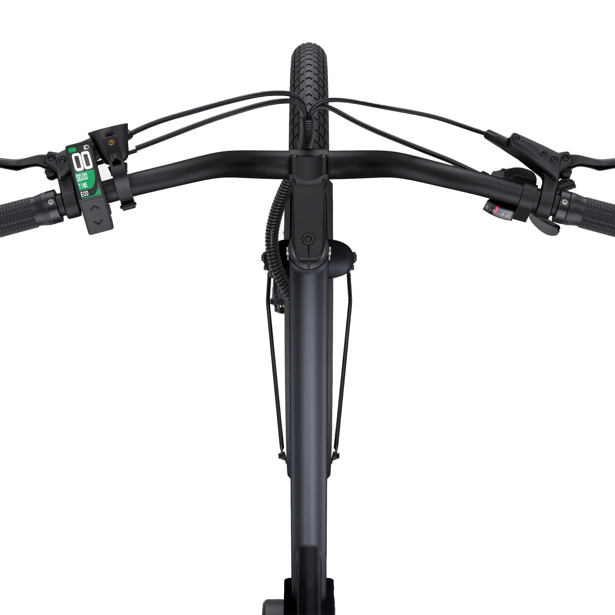 Elcykeln levereras med robusta stänkskärmar i legering, ett kraftigt pakethållare bak och integrerad belysning fram (plus en batteridriven baklampa). LCD-displayen vid vänster tumme kontrollerar fyra effektnivåer. Tektro hydrauliska skivbromsar ger tillförlitlig stoppkraft.