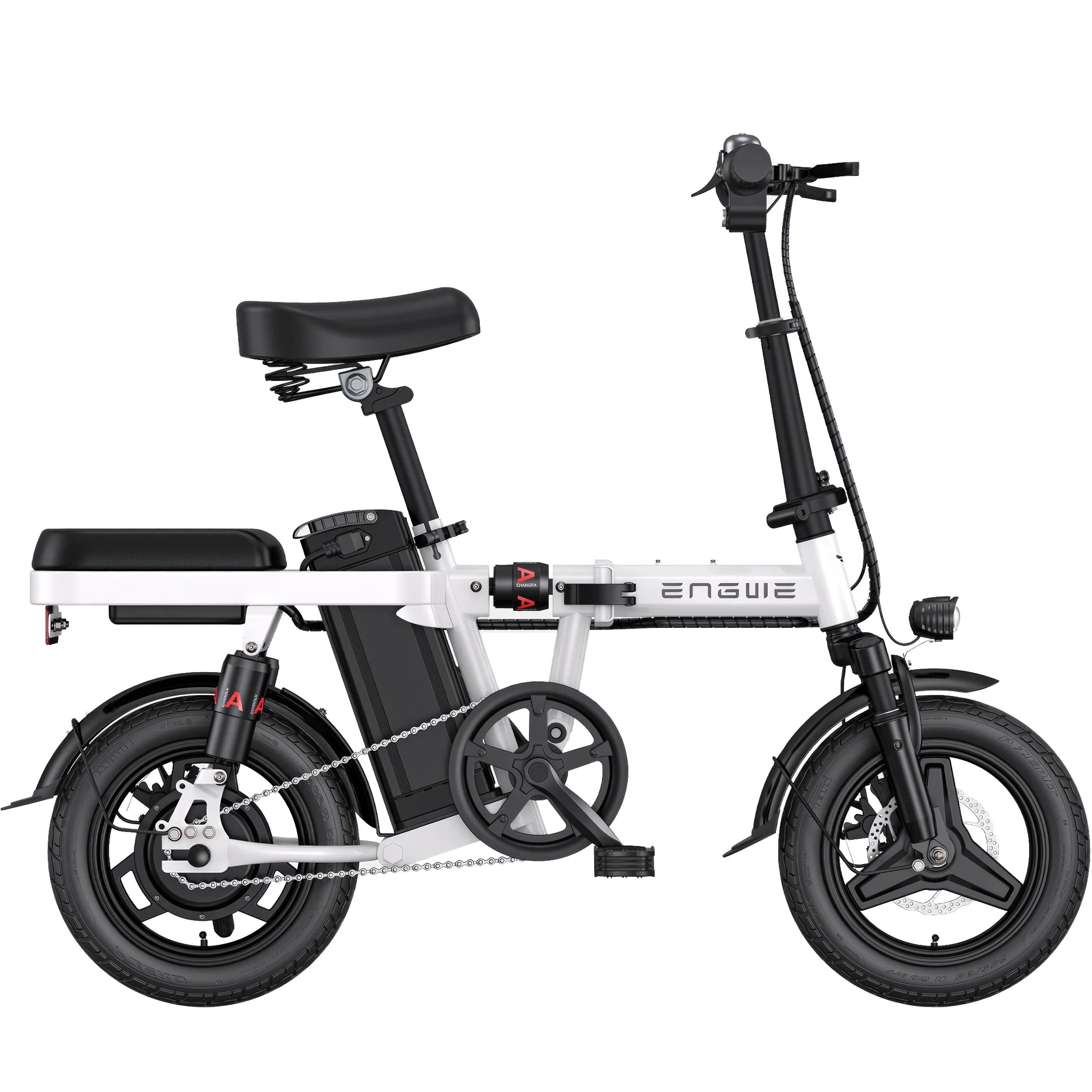 ENGWE T14 är en kompakt, hopfällbar elcykel som löser utmaningen att ta sig till jobbet den sista biten. Den här 31 kg tunga machine kombinerar en 350 W-motor med 14-tumshjul. Det är ett portabelt alternativ för pendlare som behöver förvara sin cykel i trånga utrymmen.