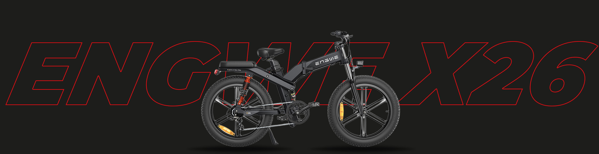 ENGWE X26 är byggd för en smidig och säker körning och har ett trippelfjädringssystem med hydraulisk framgaffel, mekanisk mellandämpare och pneumatisk bakdämpare. Tillsammans med 26" x 4,0" feta däck absorberar den stötar från grus, snö och sand, vilket ger maximal komfort i alla terränger.