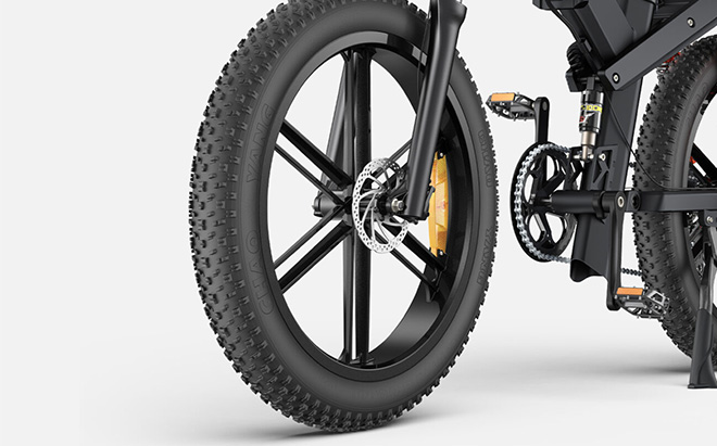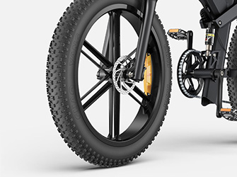 De hydrauliska skivbromsarna fram och bak på ENGWE X26 ger utmärkt stoppkraft. Dessa bromsar ser till att du kan stanna snabbt och säkert i alla förhållanden, oavsett om du cyklar genom staden eller nedför en brant stig.