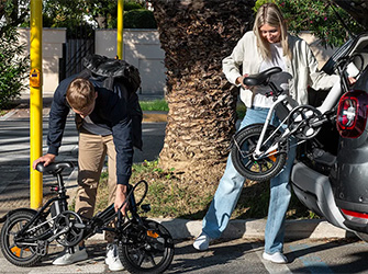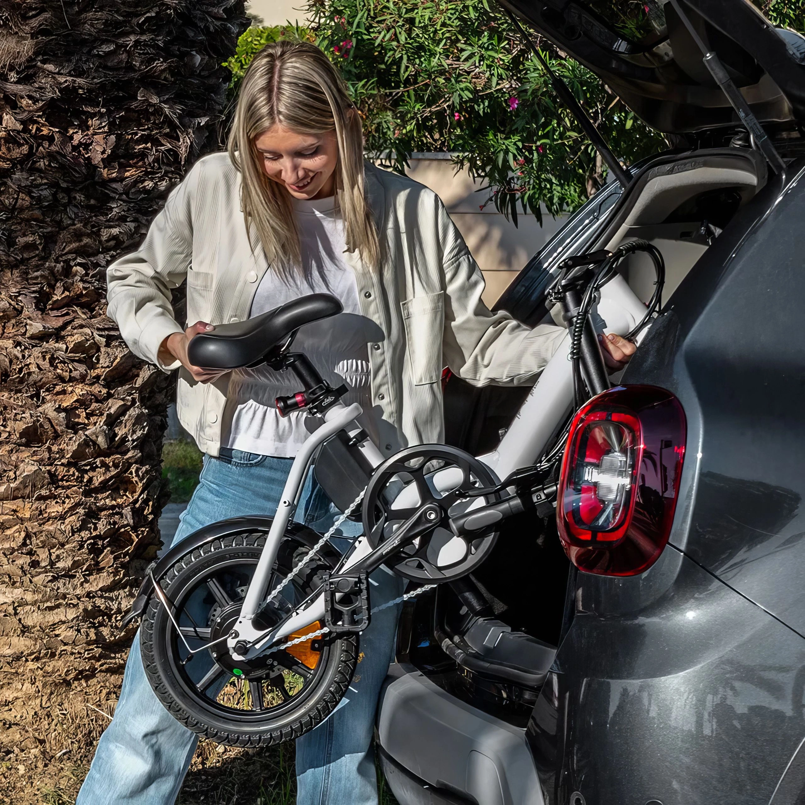Fiido D3 Pro har en innovativ hopfällbar design som gör att den 14 tum stora ramen kan fällas ihop till en kompakt storlek, vilket gör den lätt att förvara i bilens bagageutrymme, under skrivbord eller i trånga utrymmen i staden.