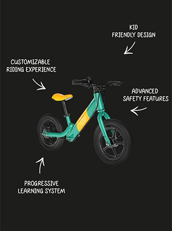 När ditt barns färdigheter förbättras aktiveras power-assist-läget, som ger ett mjukt motorstöd när cykeln känner av att barnet trycker på.