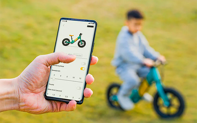 Till skillnad från traditionella balanscyklar levereras Fiido K1 med ett innovativt app-kontrollsystem som gör det möjligt för föräldrar att finjustera kraftassistans, hastighetsgränser och gasinställningar. Denna nivå av anpassning säkerställer att cykeln anpassar sig till varje barns behov, vilket ger en säker och rolig inlärningsupplevelse.