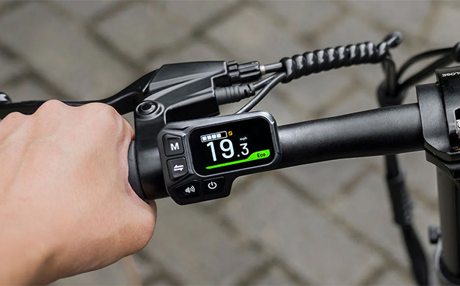Cykeln har en 1,47-tums LCD-skärm som kan anslutas till smartklockor och ge viktiga cykeldata, tillsammans med en väderbeständig IP54-klassning, kadenssensor och integrerat bromsljus för ökad säkerhet och synlighet.