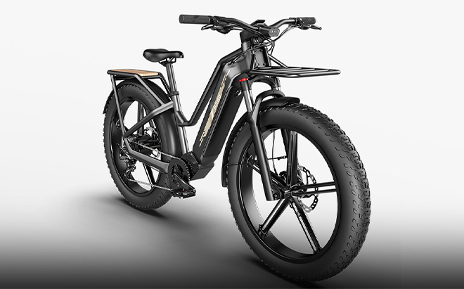 Fiido Titan kommer i elegant mattsvart med stora 26-tumshjul som menar allvar. De breda 4-tums däcken och den solida svarta ramen visar att den här cykeln är redo för allt. Det främre pakethållaren passar perfekt med den tuffa looken.