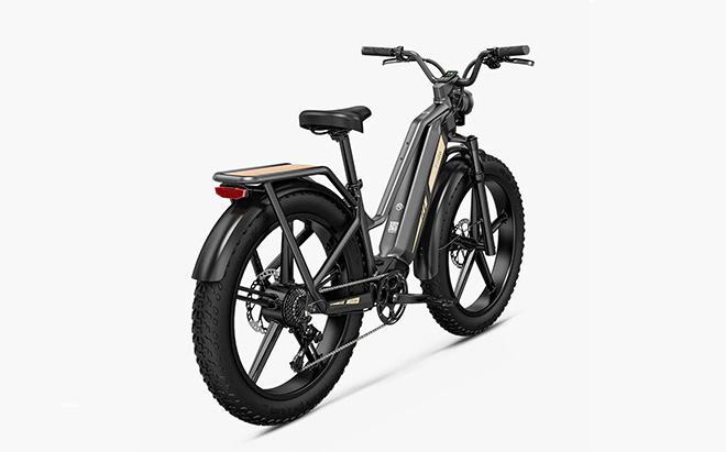 De integrerade hjulen i magnesiumlegering med dubbla lager eliminerar behovet av ekerunderhåll. Batterimodulerna på 696Wh kan tas bort och bytas ut när du behöver extra kraft. Cykeln har justerbara pedalhjälpsnivåer (3 eller 5 nivåer) för att passa terrängen.