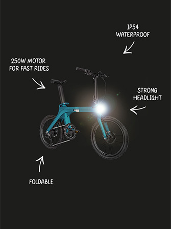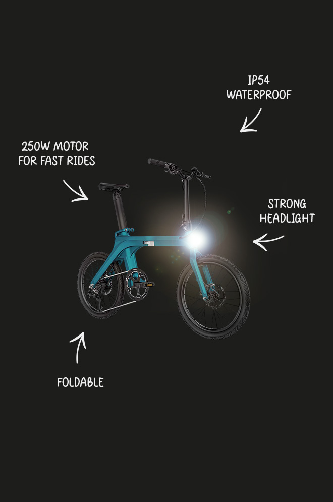 Cykeln är utformad för att vara bekväm och fälls ihop på bara 5 sekunder tack vare det dolda dubbla gångjärnssystemet. Med en vikt på endast 19,8 kg (43,7 lbs) är den lätt men ändå robust, vilket gör den enkel att förvara, bära och transportera.
