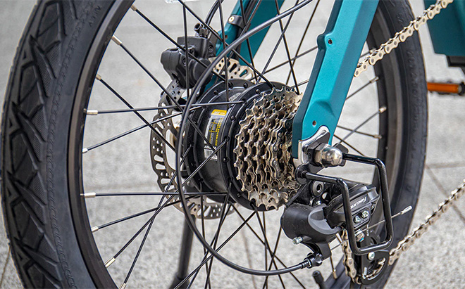 250 W-motorn arbetar med Mivice S200-vridmomentsensor för att ge intuitivt kraftstöd. Den har en imponerande räckvidd: 130 km i ECO-läge (8,3 mph/13,28 km/h i genomsnitt), 112,78 km i normalläge (9,1 mph/14,59 km/h i genomsnitt) och 89,13 km i sportläge (9,7 mph/15,65 km/h i genomsnitt), testad med en 75 kg förare vid 32 °C.