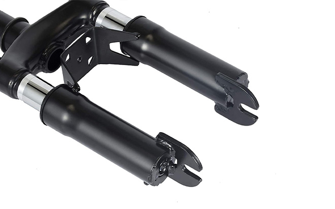Genom att absorbera ojämnheter i vägen minimerar den främre fjädringen påverkan på elektrisk skoter och förare, vilket bidrar till en bekvämare körning.