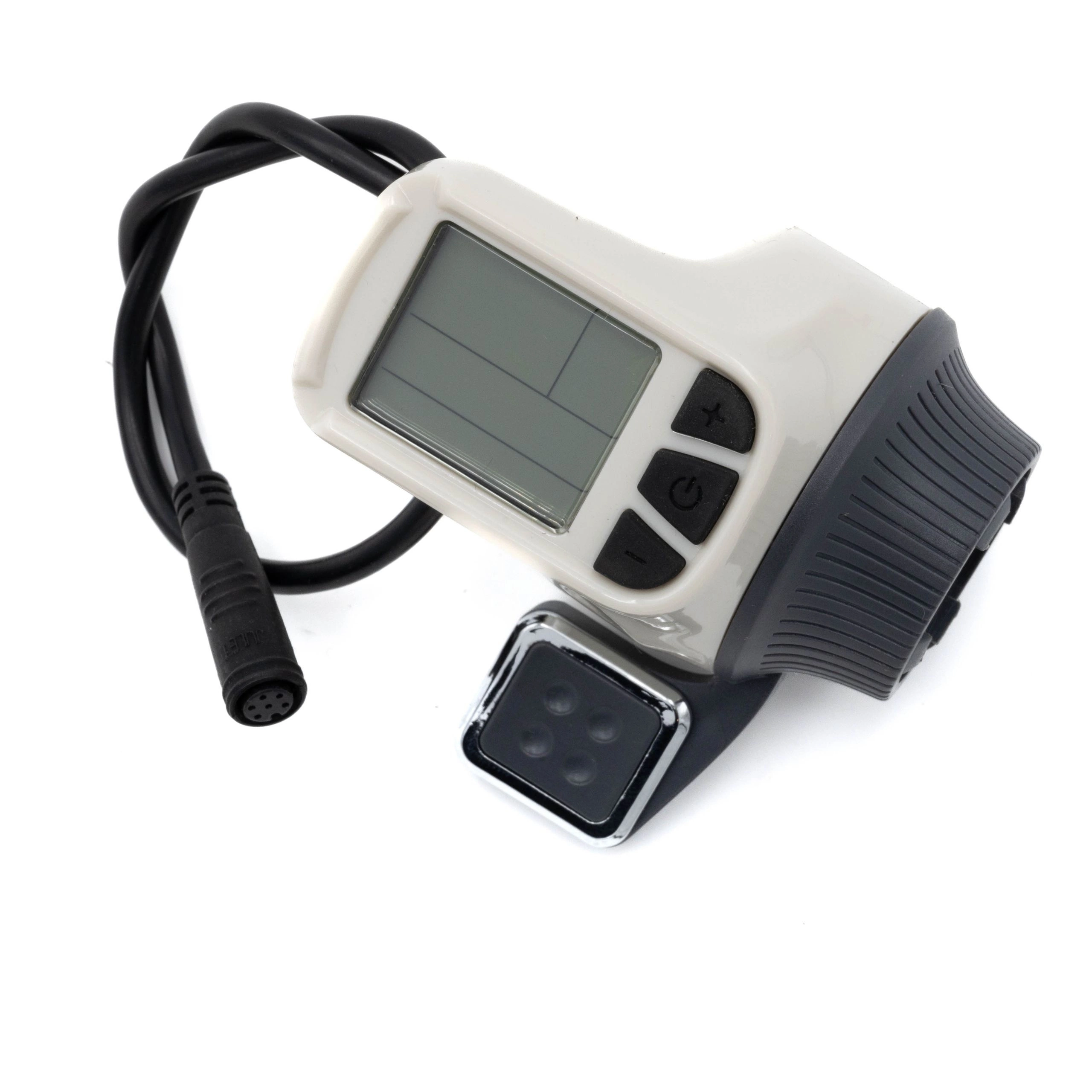 LCD-gasreglagets display är konstruerad för att ge en intuitiv körupplevelse och ger feedback i realtid om viktiga mätvärden. Med en blick kan du bedöma din hastighet, batterinivå, tillryggalagd sträcka med mera. Detta säkerställer att du förblir informerad och har kontroll och kan göra justeringar av din körning efter behov för effektivitet.