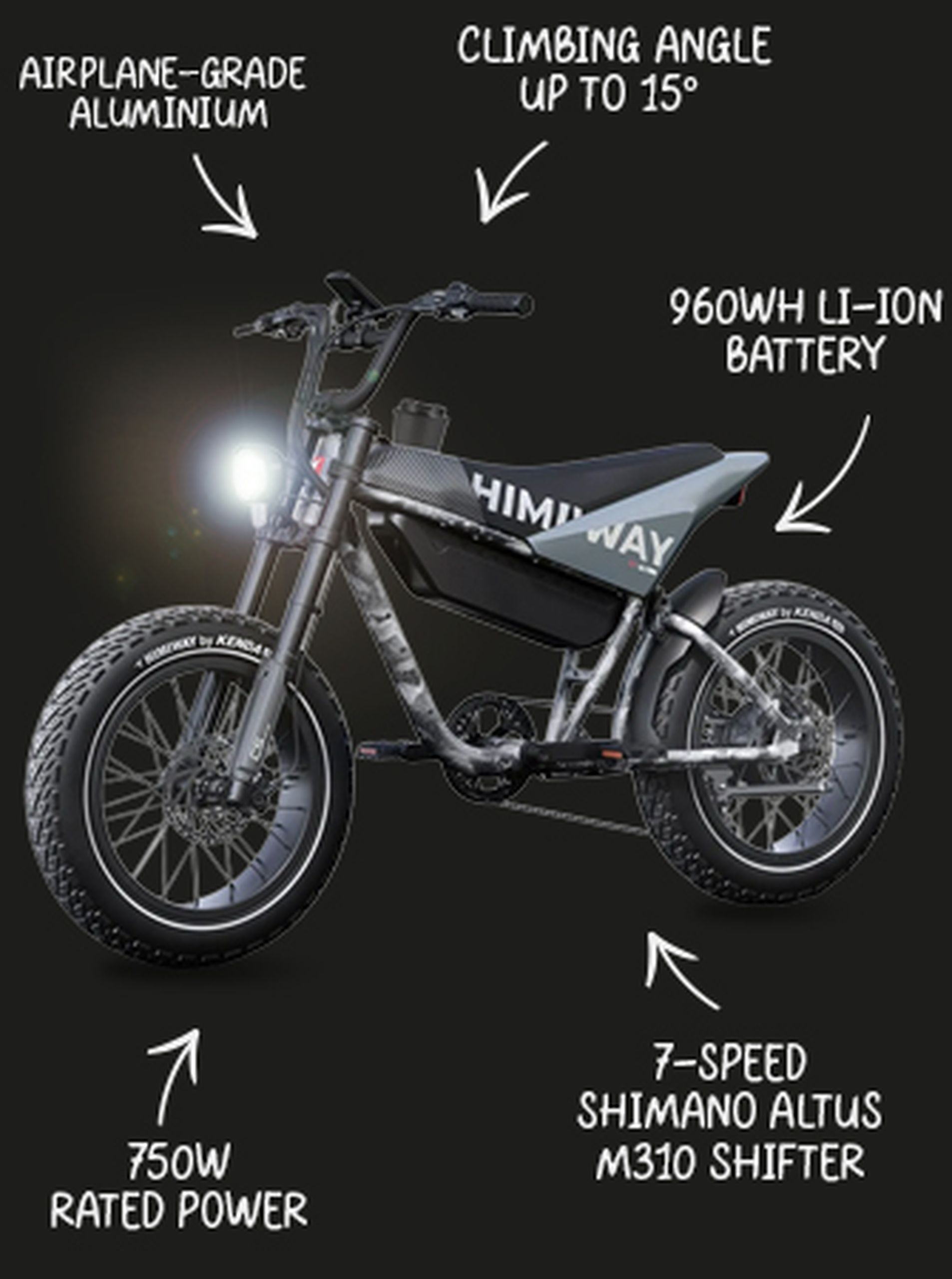 Skulle du vilja ha en cykel som fungerar som en motorcykel men med pedaler? Himiway C5 Ultra är just det. Den är stor, stark och kan köras upp till 129 km innan den behöver laddas. Den kraftfulla 750W-motorn klarar allt: cykling till jobbet och på grusvägar på helgerna