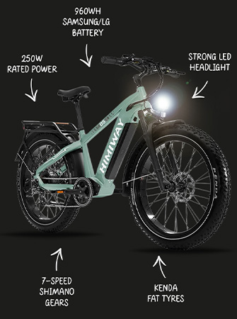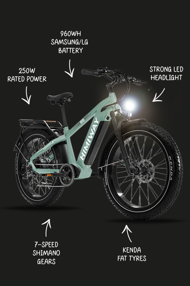 6061-aluminiumramen är dubbelt så tjock som vanliga cykelramar, vilket gör att Himiway D5 Zebra High-Step kan bära upp till 180 kg (400 lbs) vikt, vilket gör den perfekt för både användare och last samtidigt som den garanterar långsiktig hållbarhet.