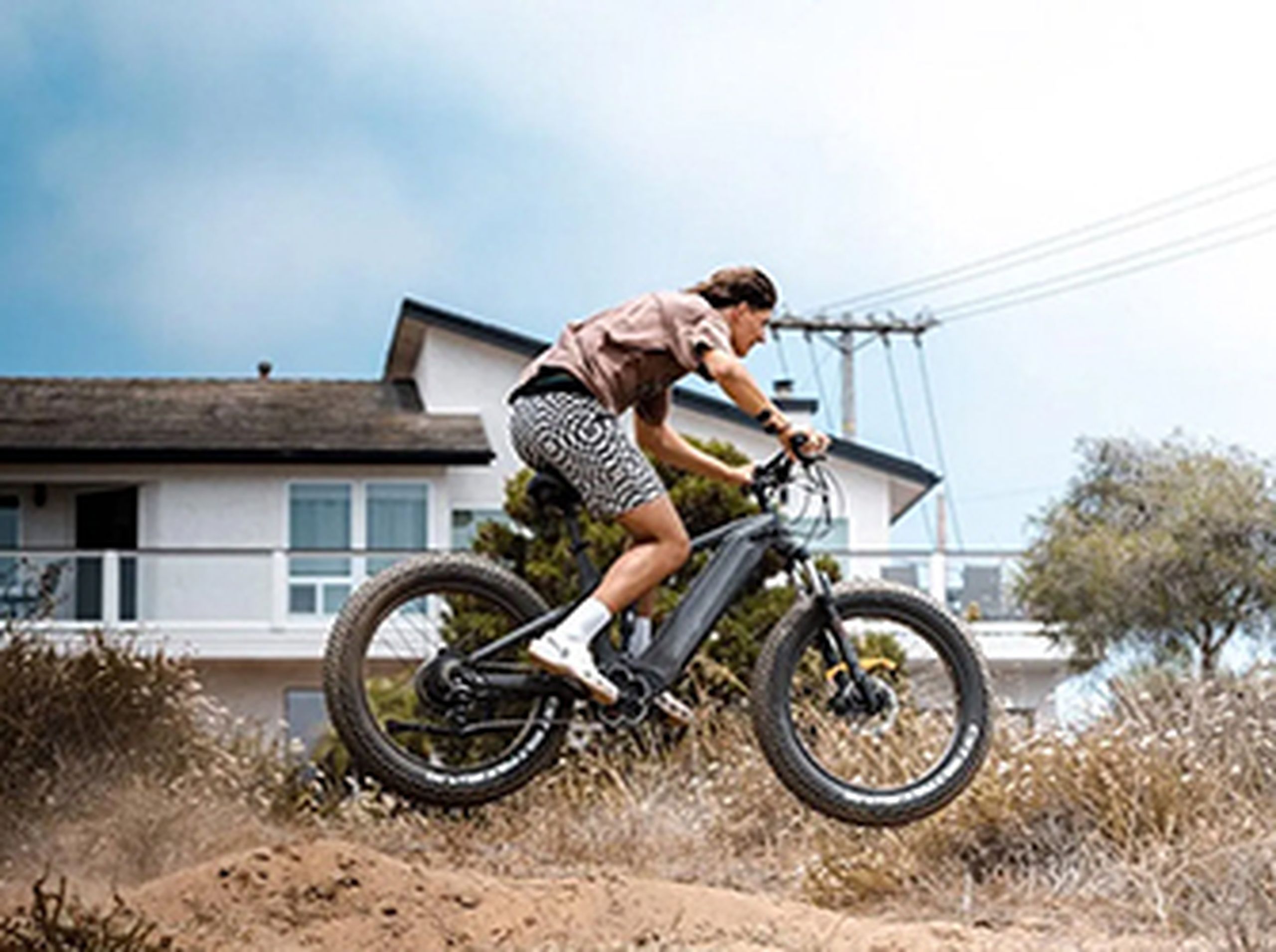Den här elcykeln klarar stötar bättre än de flesta cyklar eftersom den har en fyrstångsfjädring. Ramen är tillverkad av flygplanstillverkad aluminium och har stötdämpare fram och bak. Framgaffeln kan flyttas upp och ner med 120 mm (ca 4,7 tum).