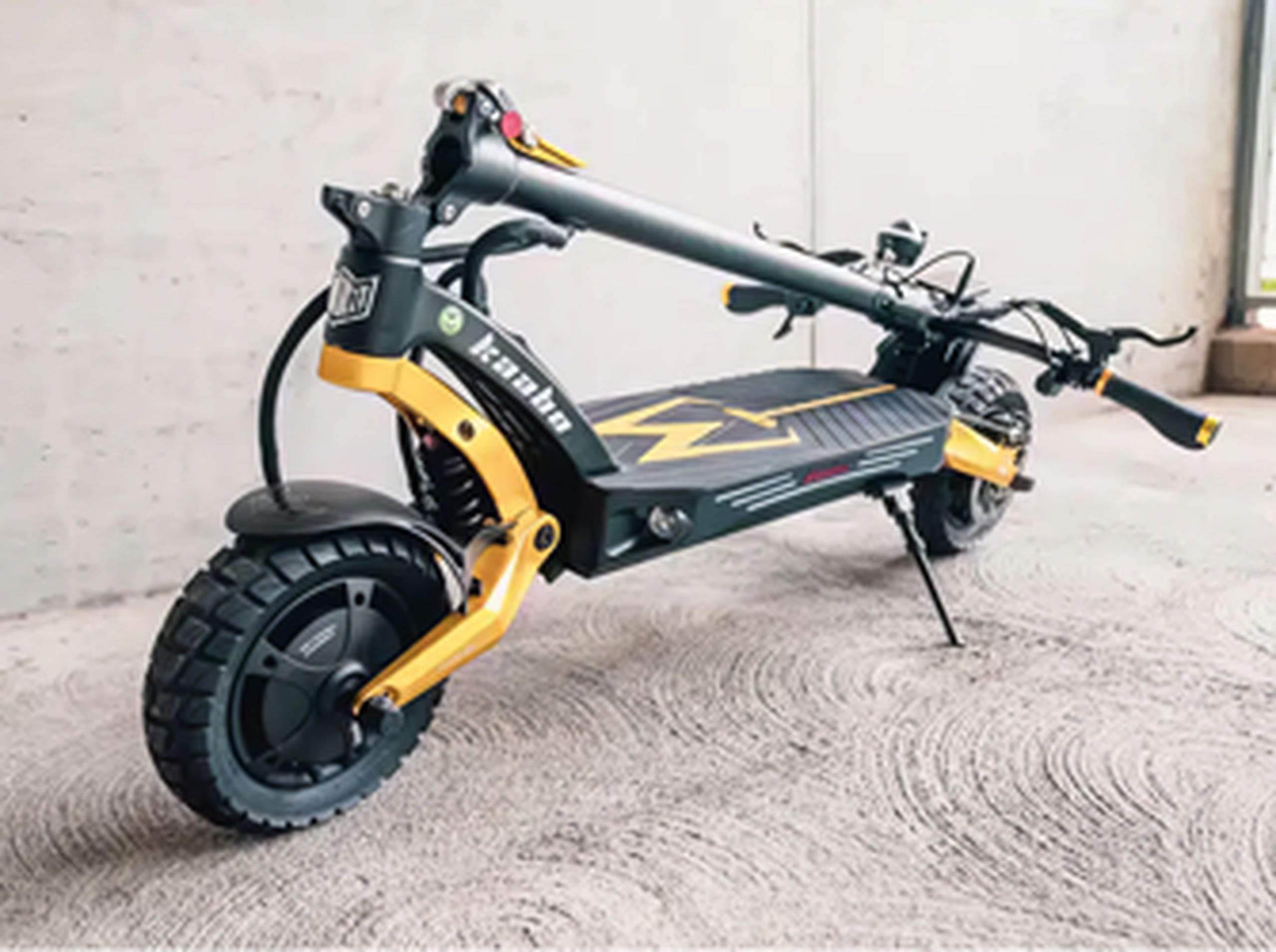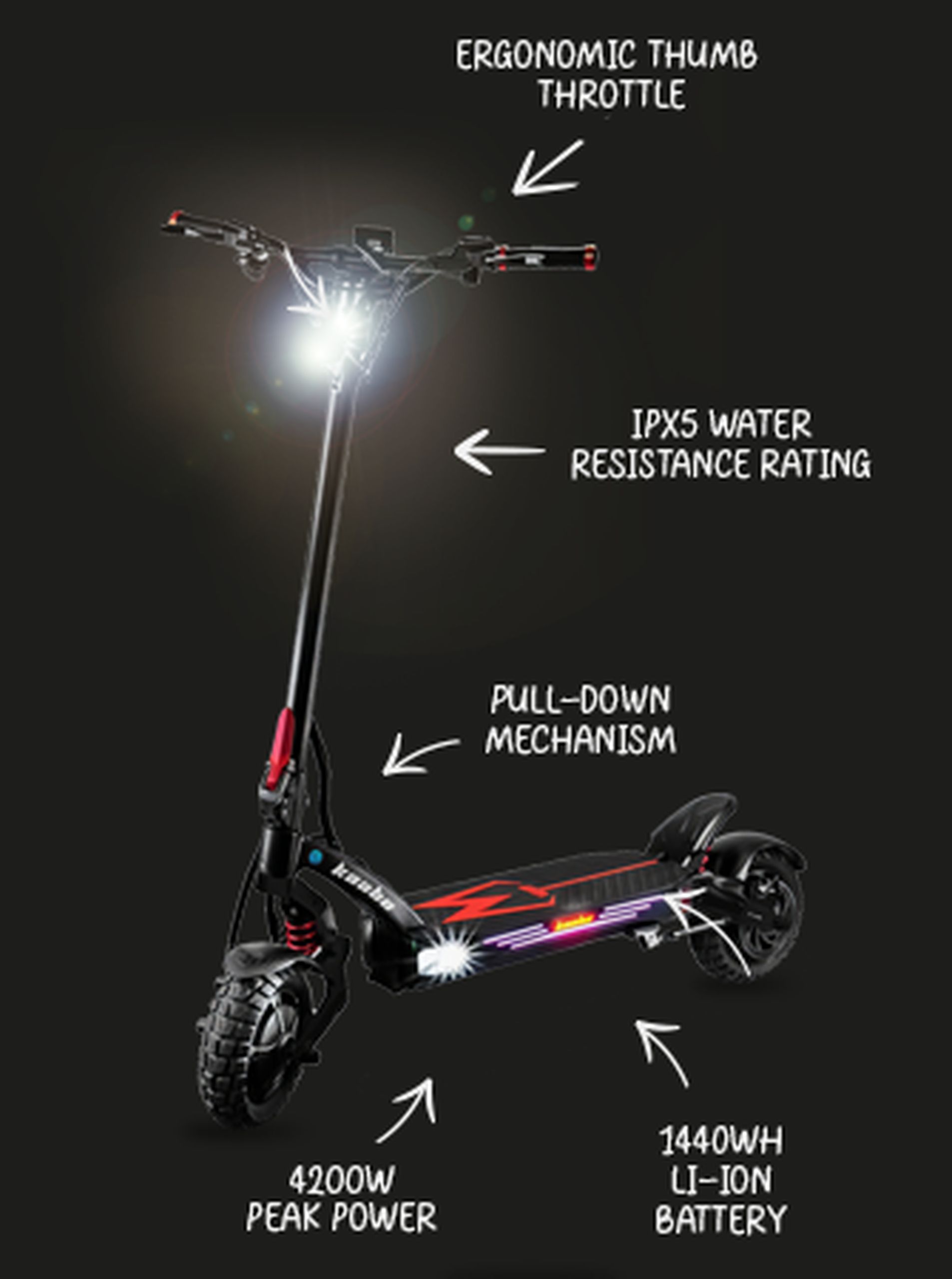 Den eldrivna Kaabo Mantis King GT elektrisk skoter har dubbla 1100W-motorer, vilket ger en total toppeffekt på över 4000W. Denna robusta kombination säkerställer snabb acceleration och når en topphastighet på 44mph (70kph)