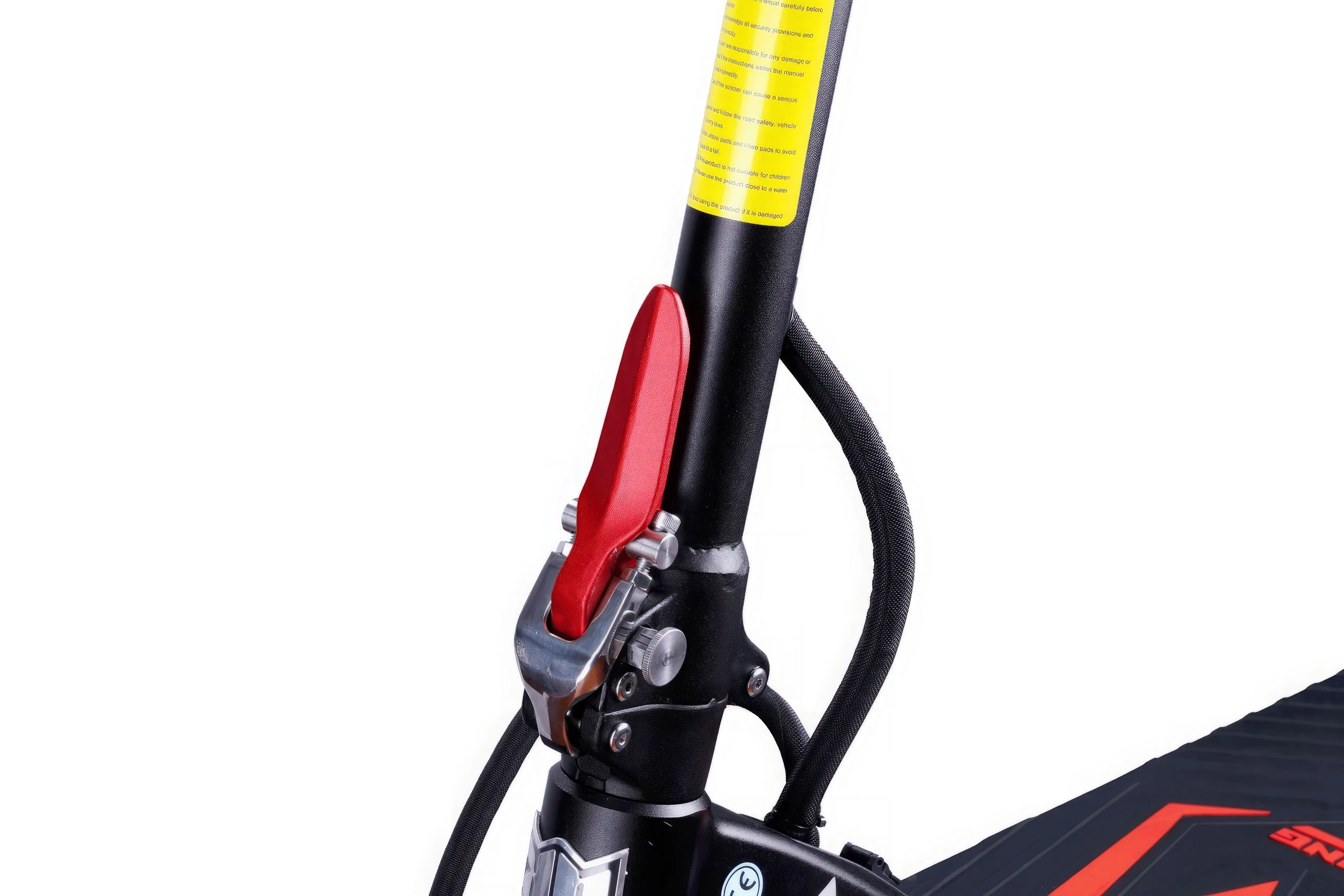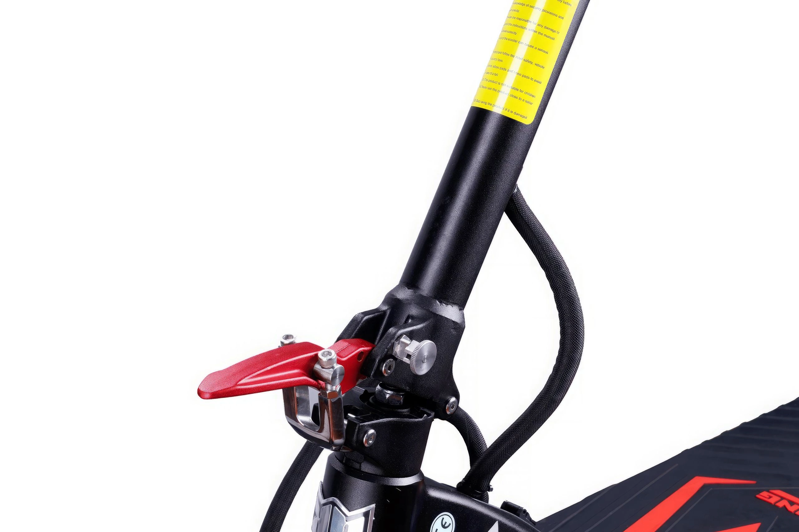 Mantis King GT har en snygg, mer diskret profil med en iögonfallande framdel och bakre svängarm. elektrisk skoter är utrustad med dubbla 10" x 3" hybriddäck på delade fälgar och justerbar hydraulisk fjädring, vilket ger en jämnare körning på ojämna underlag. Det 23" x 8,5" dubbelfärgade plattform ger också gott om utrymme för användare att byta position bekvämt under långa turer