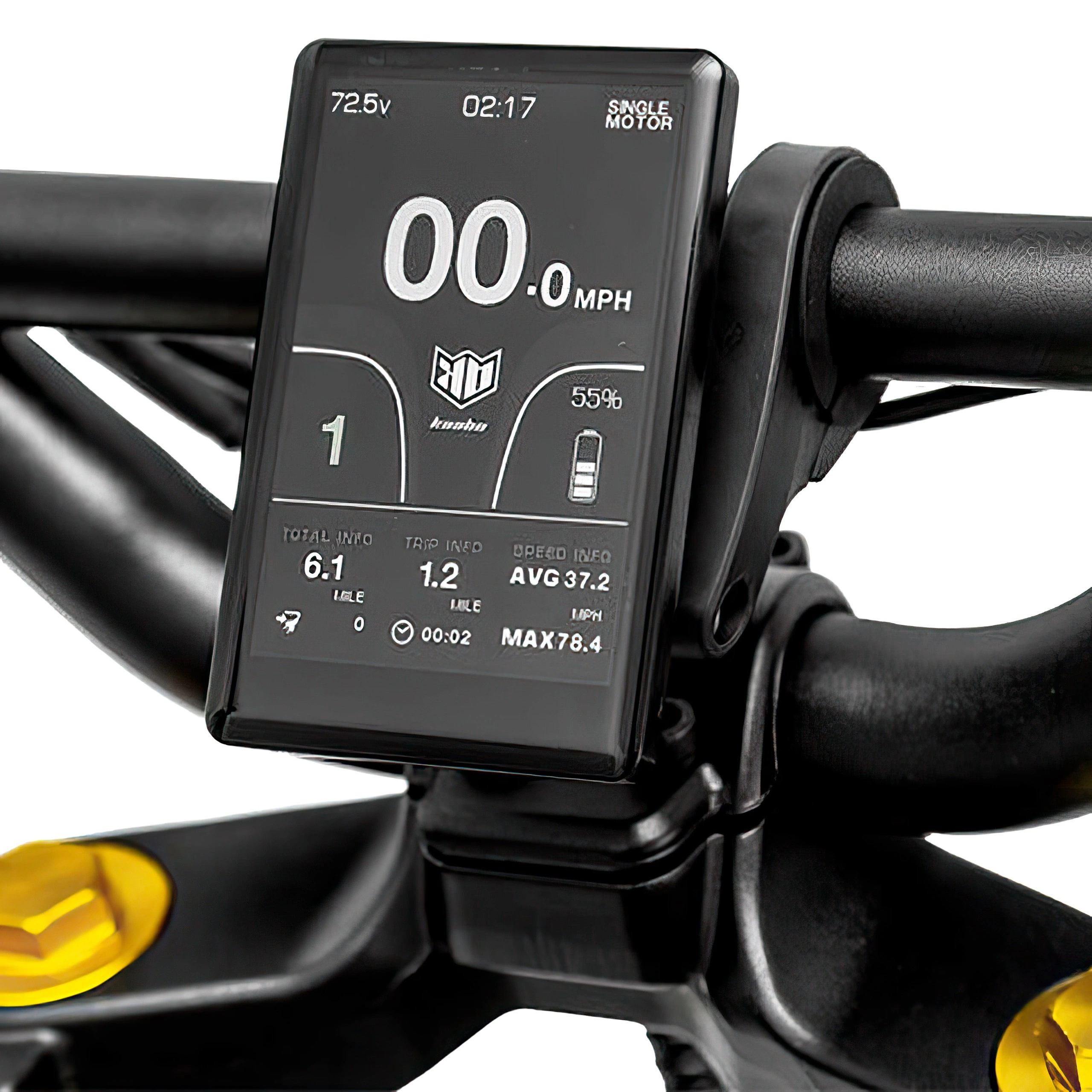 Kaabo Wolf King GT Pro erbjuder en spännande topphastighet på upp till 100 km/h tack vare de kraftfulla dubbla 2000W-motorerna. Med sitt kraftfulla 72V 35Ah-batteri kan användare uppnå en räckvidd på upp till 89 km på en enda laddning, vilket gör att de kan resa längre med tillförsikt.