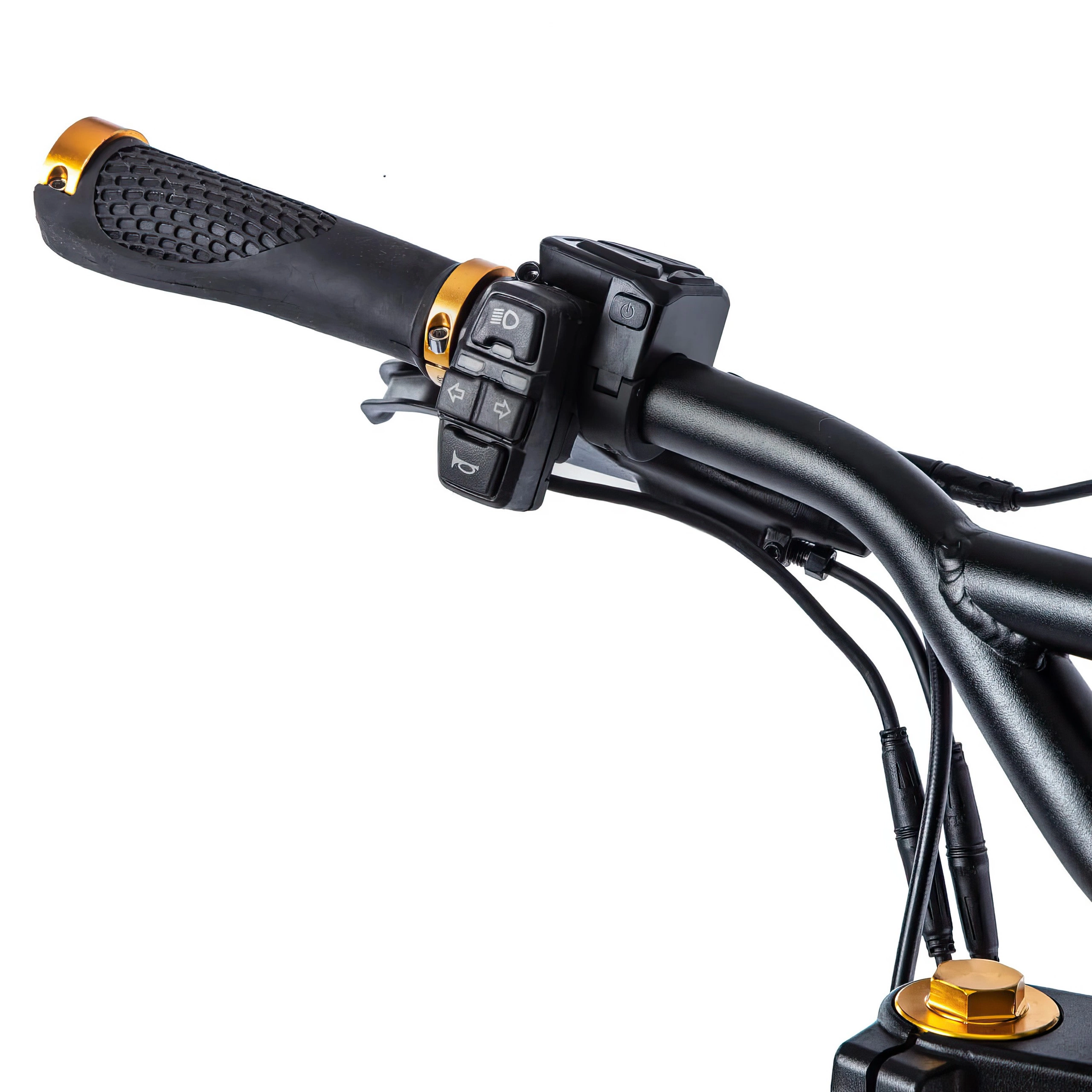 Utrymme är inget problem på Wolf King GT Pro. Den stora plattform gör att du kan stå bekvämt och inte blir trött ens under längre turer. Med 8" markfrigång kommer inga ojämnheter att sakta ner dig. elektrisk skoter erbjuder en touch av personlig anpassning med sina två distinkta färgalternativ. För den som föredrar en klassisk look är den svartröda varianten perfekt. Om du gillar att sticka ut är det gyllene alternativet en showstopper som ger din bil en unik känsla.