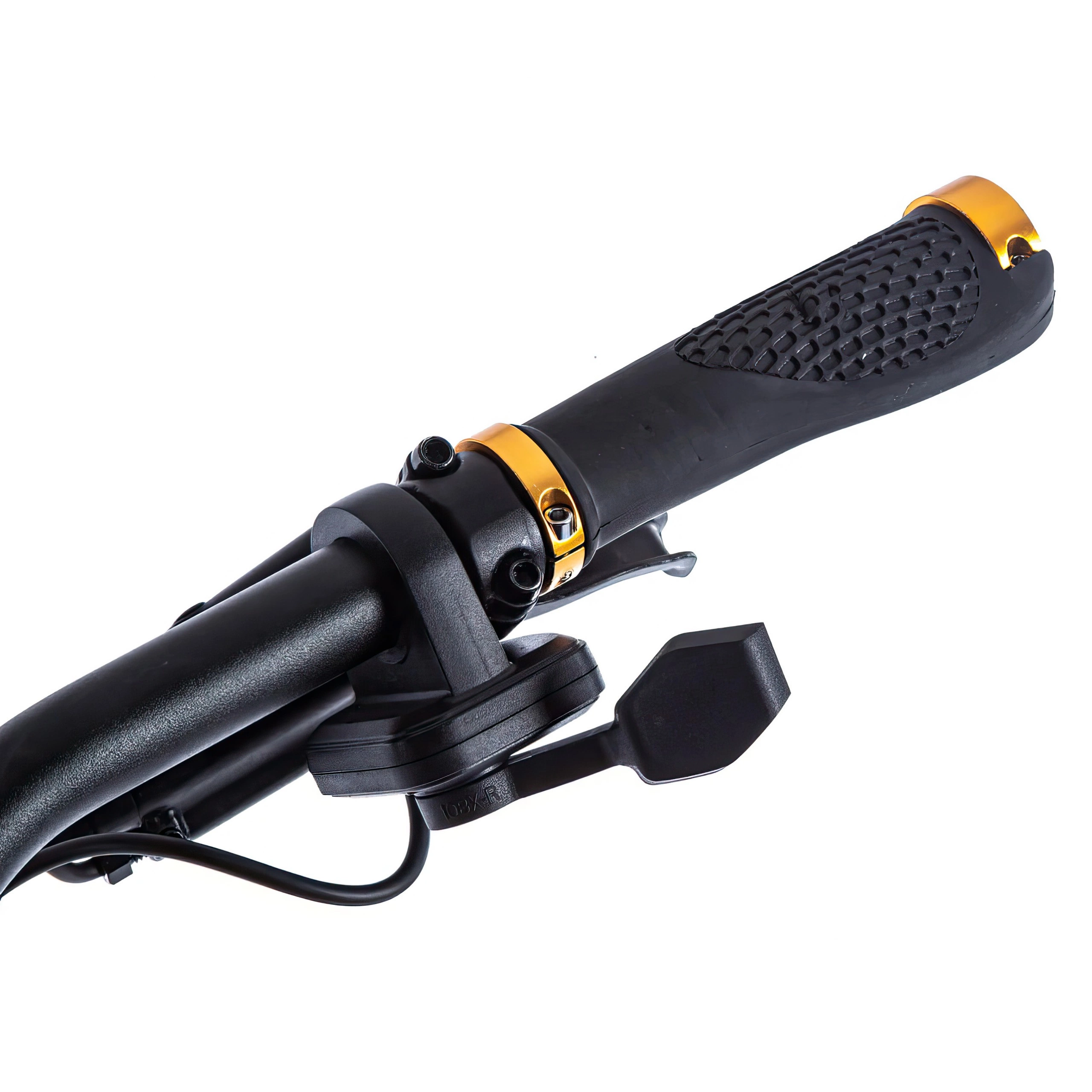 Utrymme är inget problem på Wolf King GT Pro. Den stora plattform gör att du kan stå bekvämt och inte blir trött ens under längre turer. Med 8" markfrigång kommer inga ojämnheter att sakta ner dig. elektrisk skoter erbjuder en touch av personlig anpassning med sina två distinkta färgalternativ. För den som föredrar en klassisk look är den svartröda varianten perfekt. Om du gillar att sticka ut är det gyllene alternativet en showstopper som ger din bil en unik känsla.