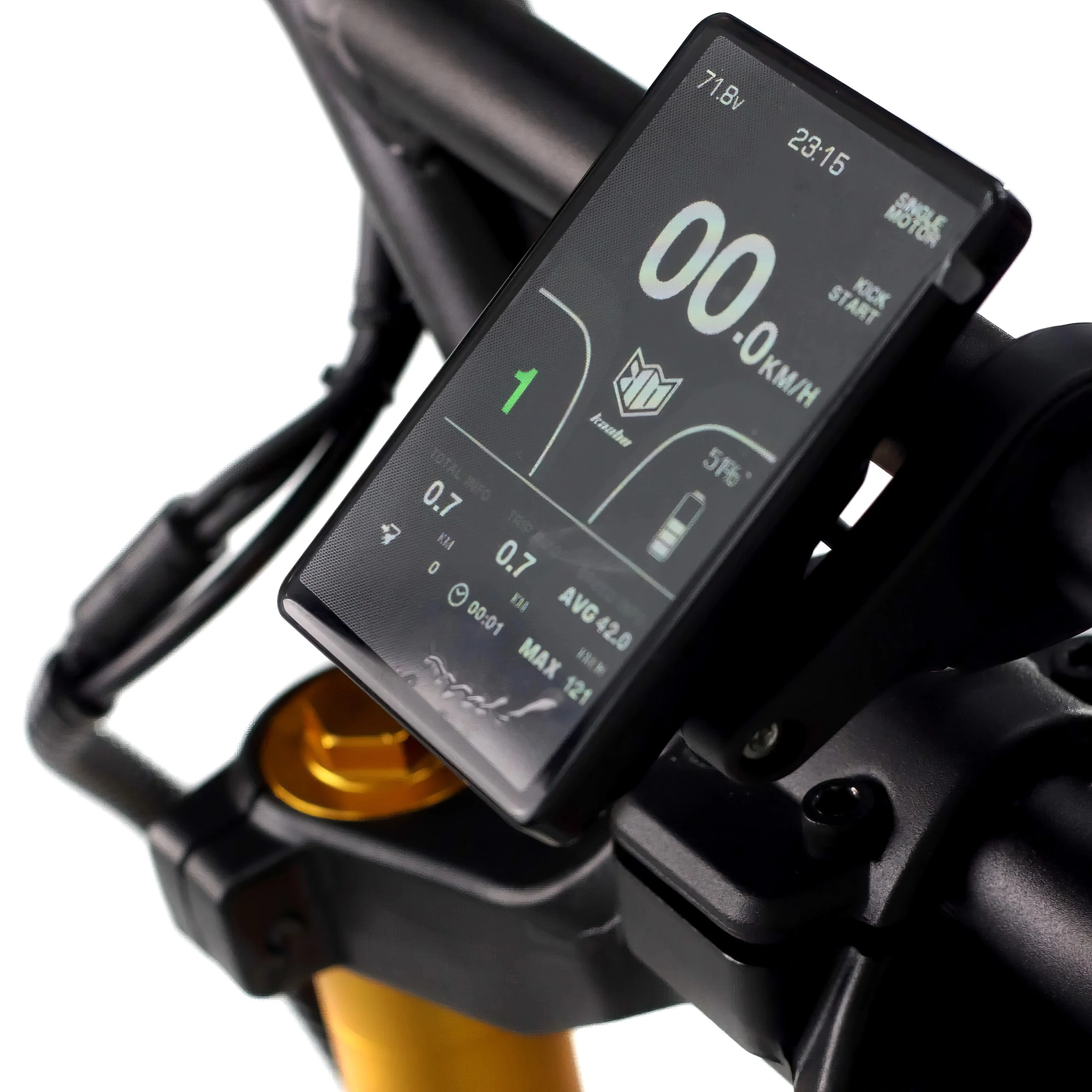 Med den 4,2" stora TFT-färgdisplayen håller du dig informerad och har full kontroll. Där hittar du all information du behöver, t.ex. hastighet och återstående räckvidd. Med antireflexfunktion och automatisk avbländning är det enkelt att justera inställningar eller lägen. För din säkerhet har den ett lösenordsskydd. Det responsiva tumgasreglaget säkerställer fin hastighetsmodulering.
