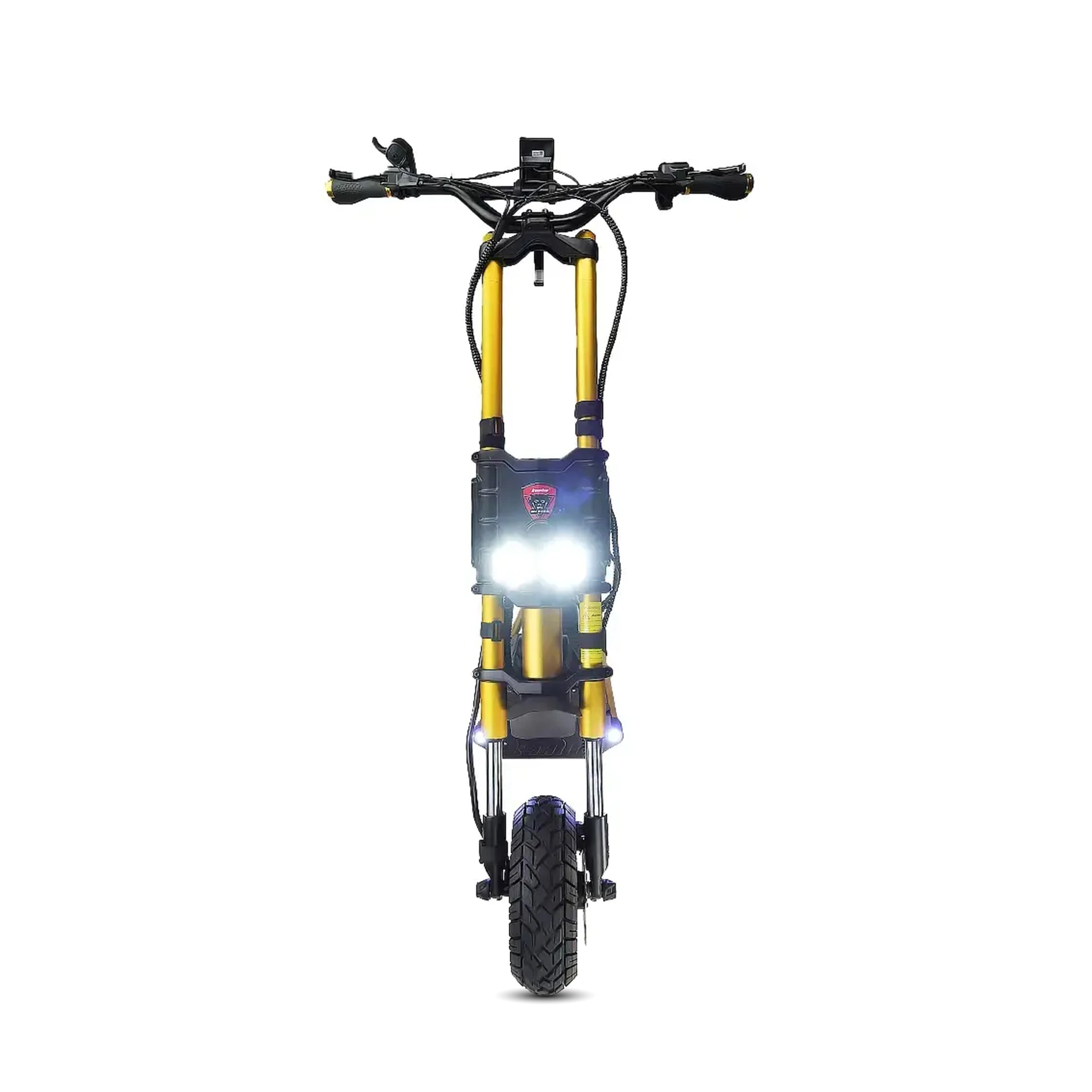Kaabo Wolf King GTR är utrustad med banbrytande teknik och sätter en ny standard för elektrisk elektrisk skoter innovation. Dess hjärta, ett massivt bärbart batteri på 2419 Wh, garanterar en maximal räckvidd på upp till 180 km, med stöd av dubbla högeffektsmotorer som kan leverera en häpnadsväckande maxeffekt på 13440 W. Det avancerade styrsystemet på elektrisk skoter har en 2-i-1 FOC sinusvågskontroller som ger jämn acceleration och effektiv strömhantering. Användare kan övervaka och justera inställningarna via en ljusstark, vattentät TFT-skärm som är kopplad till en Kaabo-accelerator, vilket säkerställer optimal prestanda. Det omkopplingsbara drivläget med dubbla motorer , hydrauliska bromsar fram och bak med ABS och justerbara fjädringssystem förbättrar körupplevelsen ytterligare och ger oöverträffad stabilitet, kontroll och säkerhet i alla typer av terräng.